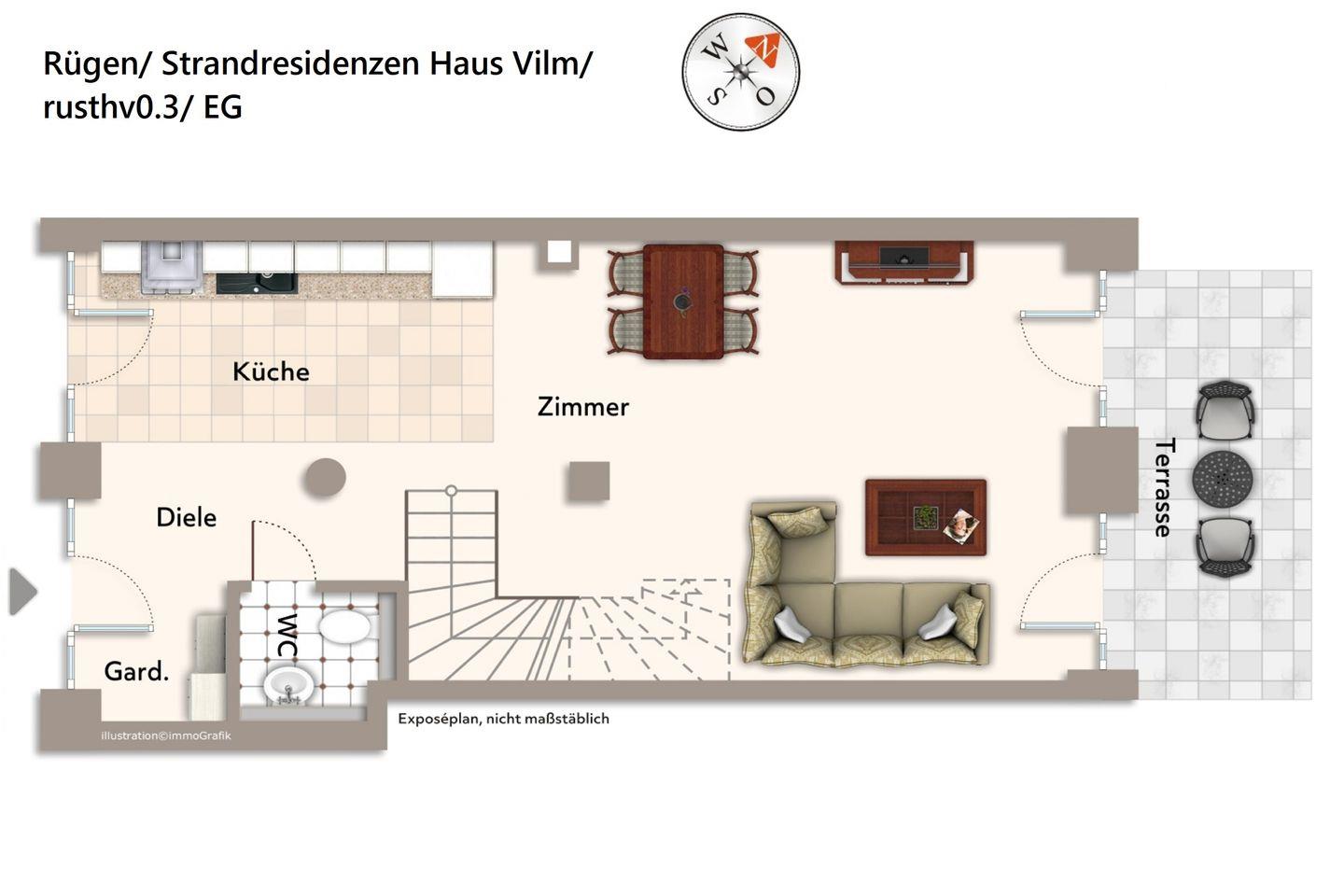 Ihr habt die Wahl – die behagliche Maisonettewohnung bietet euch eine Terrasse und einen Balkon, auf denen ihr ganz nach Lust und Laune das einmalige Inselfeeling Rügens genießen könnt.