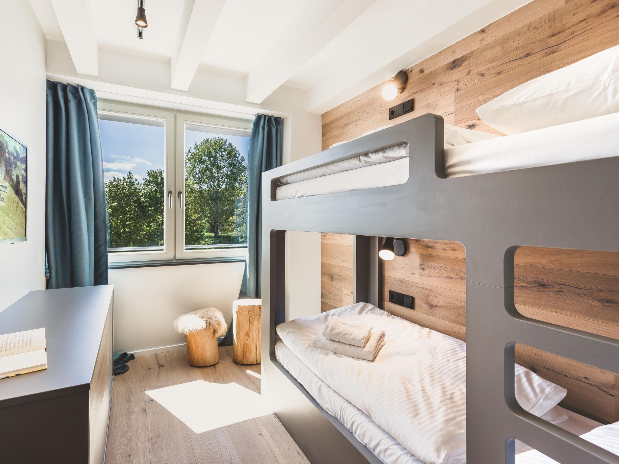 "Seealm XXL", 4-room apartment 110 m2. Object suitable for 4 adults + 2 children. Spacious, comfortable and modern furnishings: living/dining room with satellite TV (flat screen). Exit to the balcony. 2 rooms, each room with 1 double bed and shower/WC. 1 room with 1 x 2 bunk beds. Kitchenette (oven, dishwasher, 4 ceramic glass hob hotplates, toaster, kettle, microwave, electric coffee machine, Capsules for coffee machine (Nespresso) extra). Shower/WC. Parquet floors. Balcony. Balcony furniture. Facilities: sauna, baby cot for up to 2 year olds. Internet (WiFi, free). Please note: non-smokers only. Maximum 1 pet/ dog allowed. Smoke alarm.