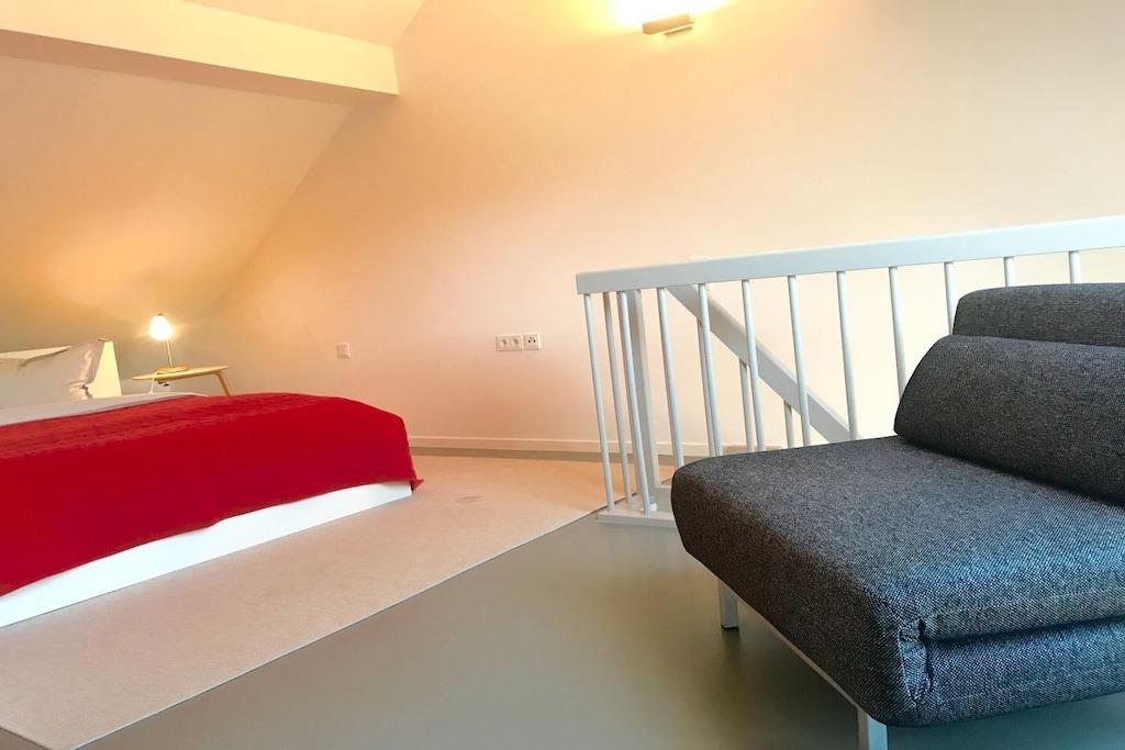 Stueetage: (åbent køkken(, tekøkken, Fjernsyn, kakkelovn, radio, CD-afspiller, stereoanlæg, kogeplade, elkedel, brødrister, komfur, kaffemaskine, ovn, grill, opvaskemaskine , køleskab, fryser), badeværelse(, toilet, tørretumbler, bruser, håndvask, føntørrer)) , , Stue/soveværelse(, , , , , Børnepasning, enkeltsovesofa, enkeltskabsseng, dobbeltseng, Fjernsyn, spisebord, tremmeseng, Puslepude, barnestol, legetøj), Internetadgang, Internetadgang, tørretumbler, varme, terrasse(grill, havemøbler), parkering, Vaskeripakke mod et gebyr