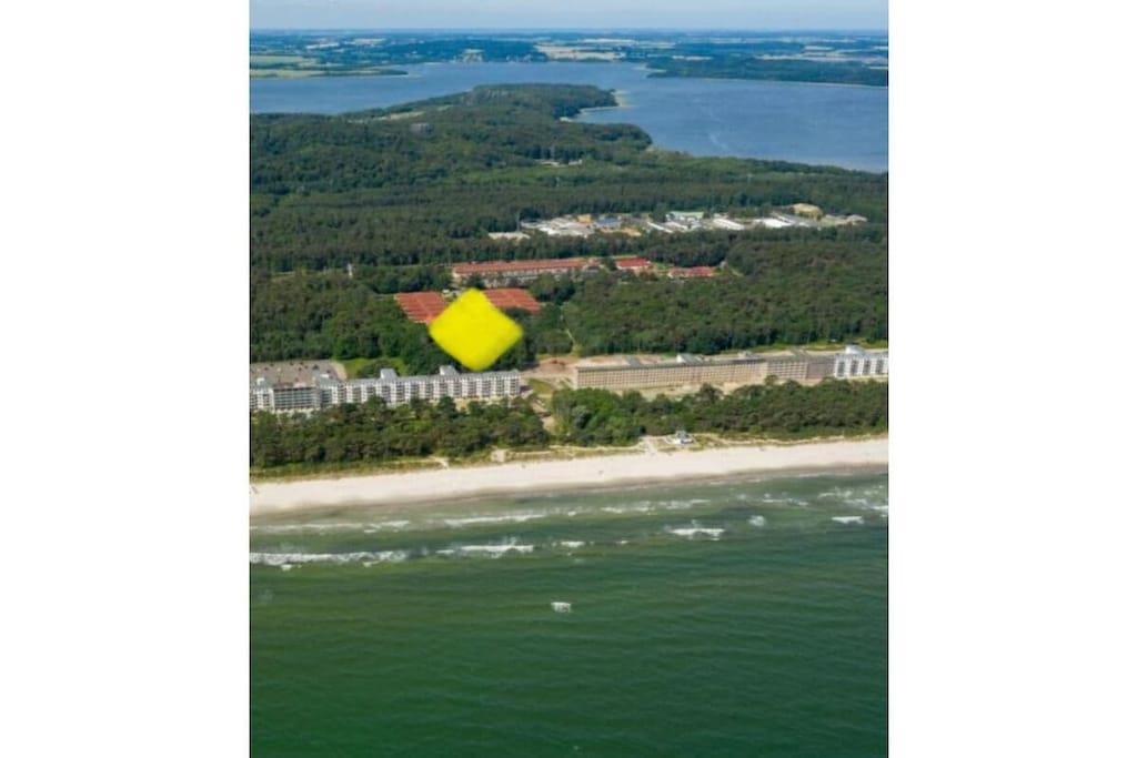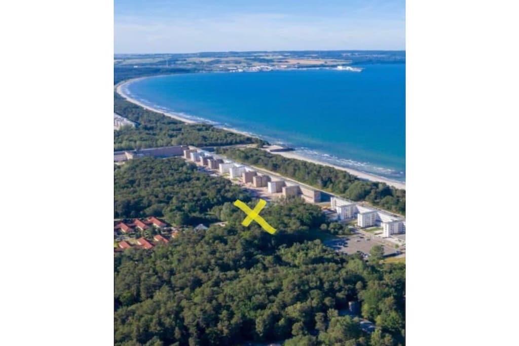 Afstande fra ferieboligen og placering på kort