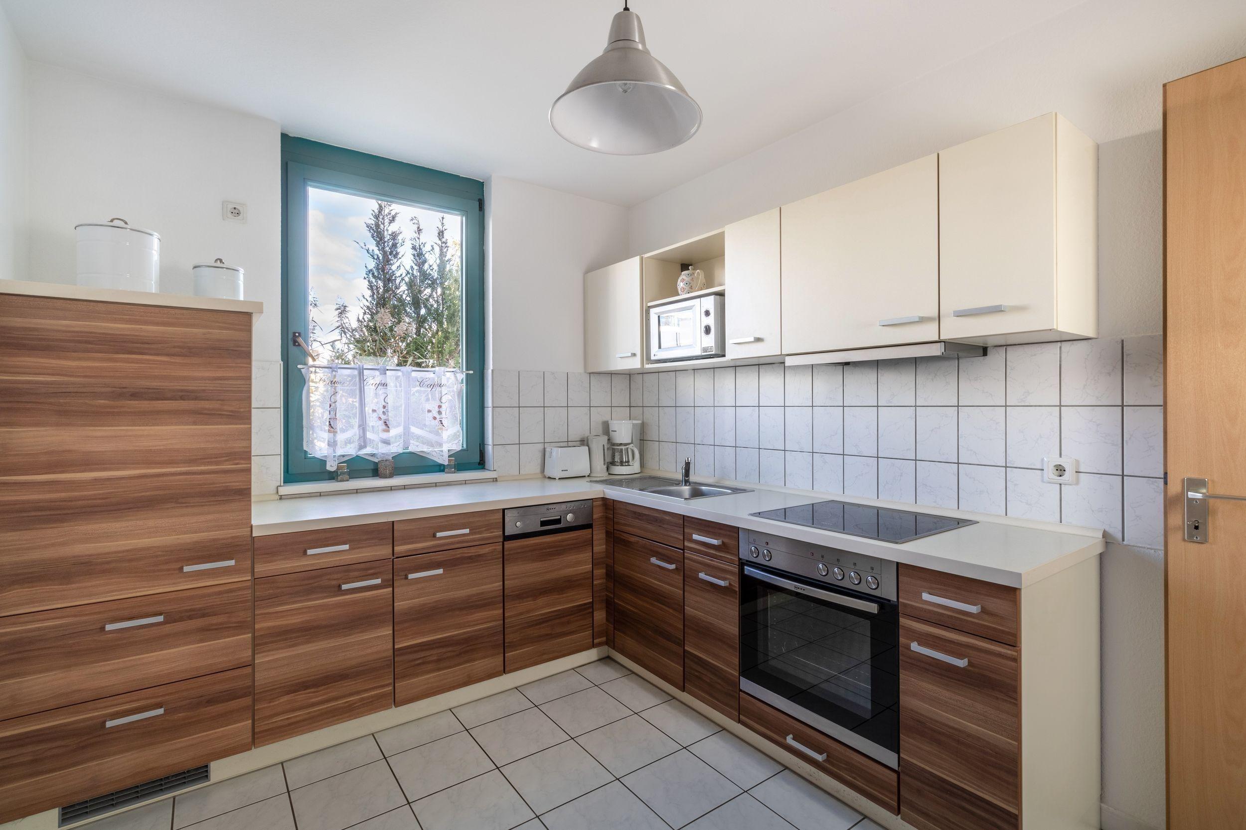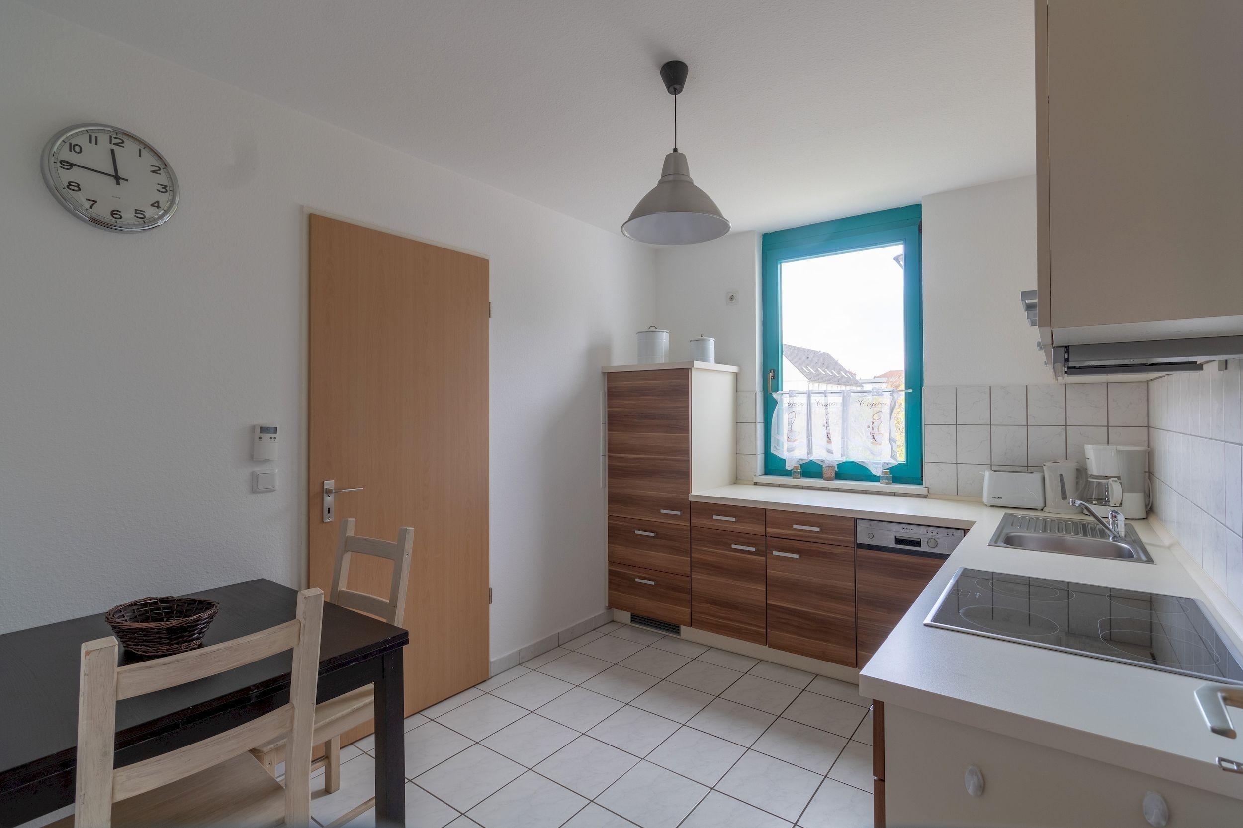 Die Ausstattung der separaten Küche mit Geschirr, Gläsern und Küchengeräten lässt keine Wünsche offen. Die Wohnung verfügt über ein neues Duschbad.