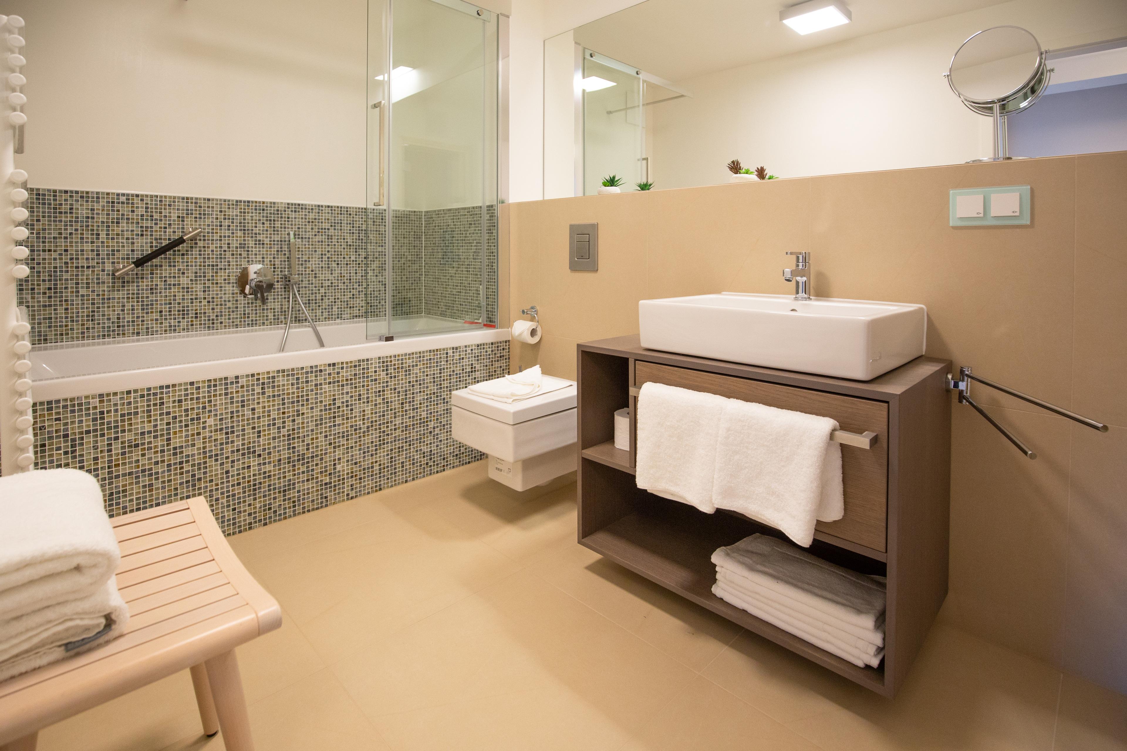 Weiterhin befinden sich ein Wellnessbereich mit Schwimmbad, Kinderbecken, Sauna, Dampfsauna und ein Fitnesscenter im Gebäude (nicht im Mietpreis inbegriffen).