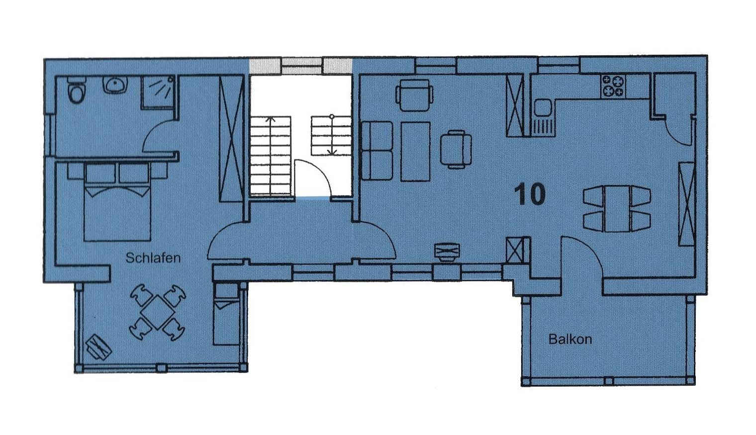 Das moderne, helle 2 Raum - Apartment bietet Platz für bis zu 4 Personen und liegt im 1.OG.