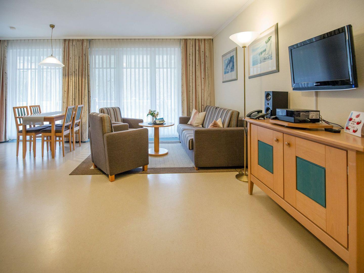 Wohnraum, separates Schlafzimmer, Balkon, eingerichtete Küchenzeile mit Geschirrspüler, Dusche/ WC, LCD-Flachbildschirm, DVD-Player, Stereo-Anlage, Haustiere nicht erlaubt, Nichtraucher