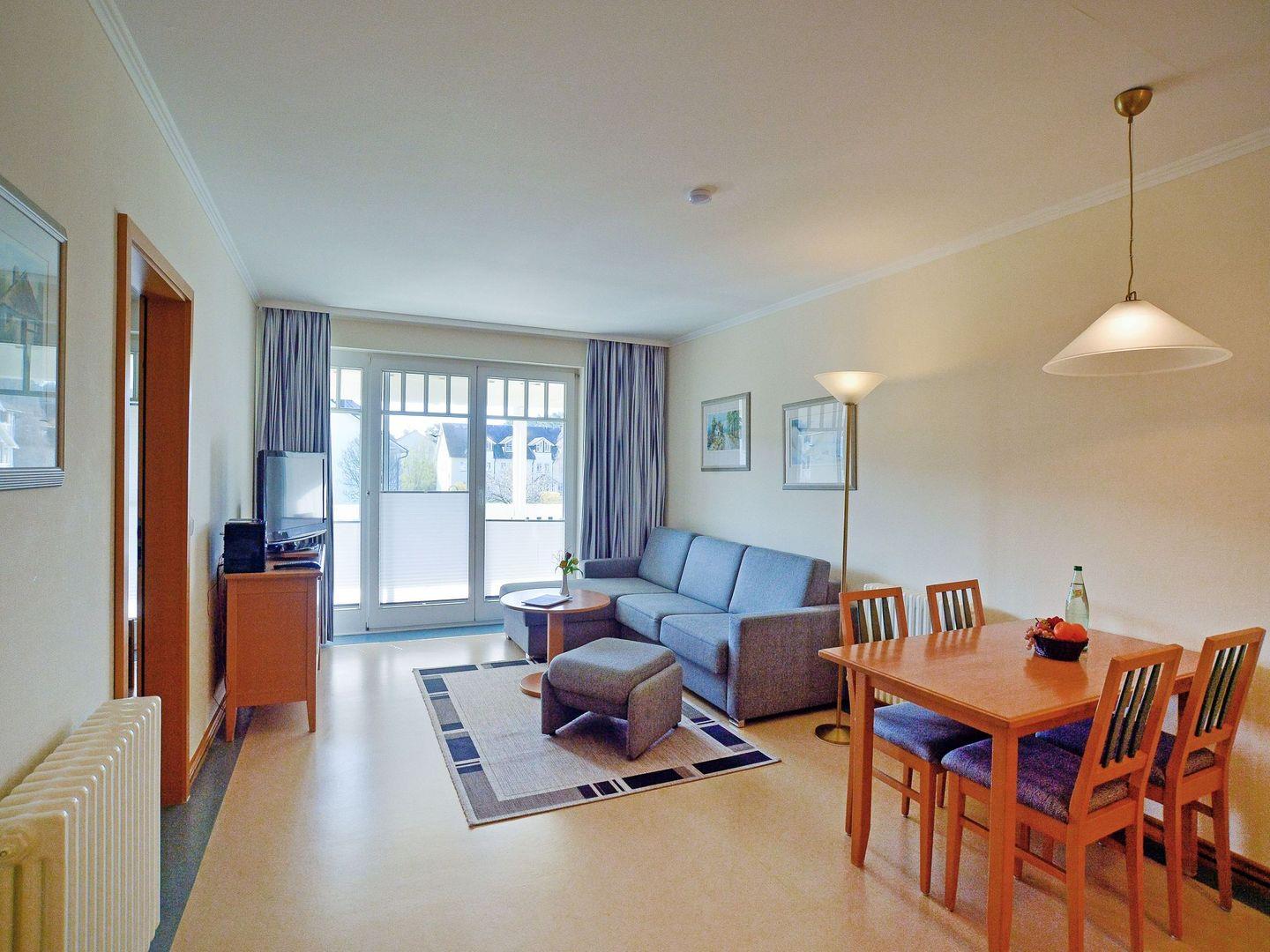 Wohnraum, 2 Schlafzimmer, eingerichtete Küchenzeile mit Geschirrspüler, Mikrowelle, Bad mit Dusche/ WC, Balkon, LCD-Flachbildfernseher, DVD-Player, Stereo-Anlage, Haustiere nicht erlaubt, Nichtraucher