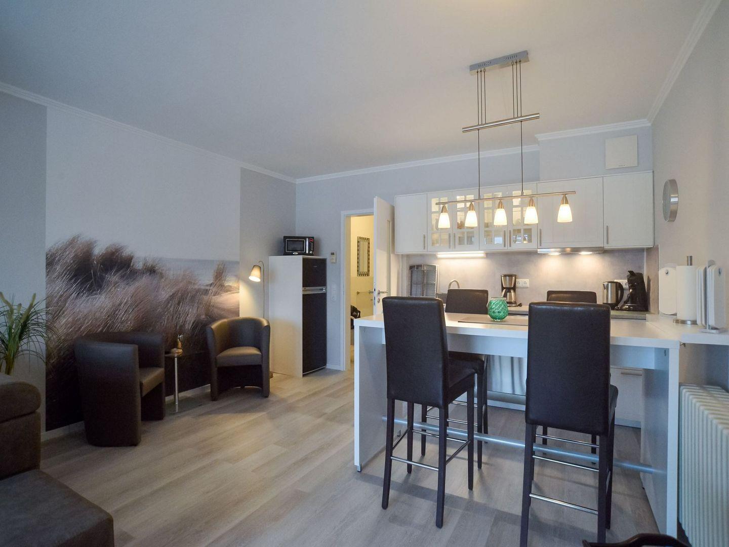 Wohnraum, separates Schlafzimmer mit 32 Zoll LCD-TV, großer Balkon mit Strandkorb, eingerichtete Küchenzeile mit Geschirrspüler und Mikrowelle, Kühl- und Gefrierkombination, Dusche/ WC, 50 Zoll LED-Flachbildschirm, Heimkino-DVD-Anlage, Haustiere nicht erlaubt, Nichtraucher, Dachgeschoss