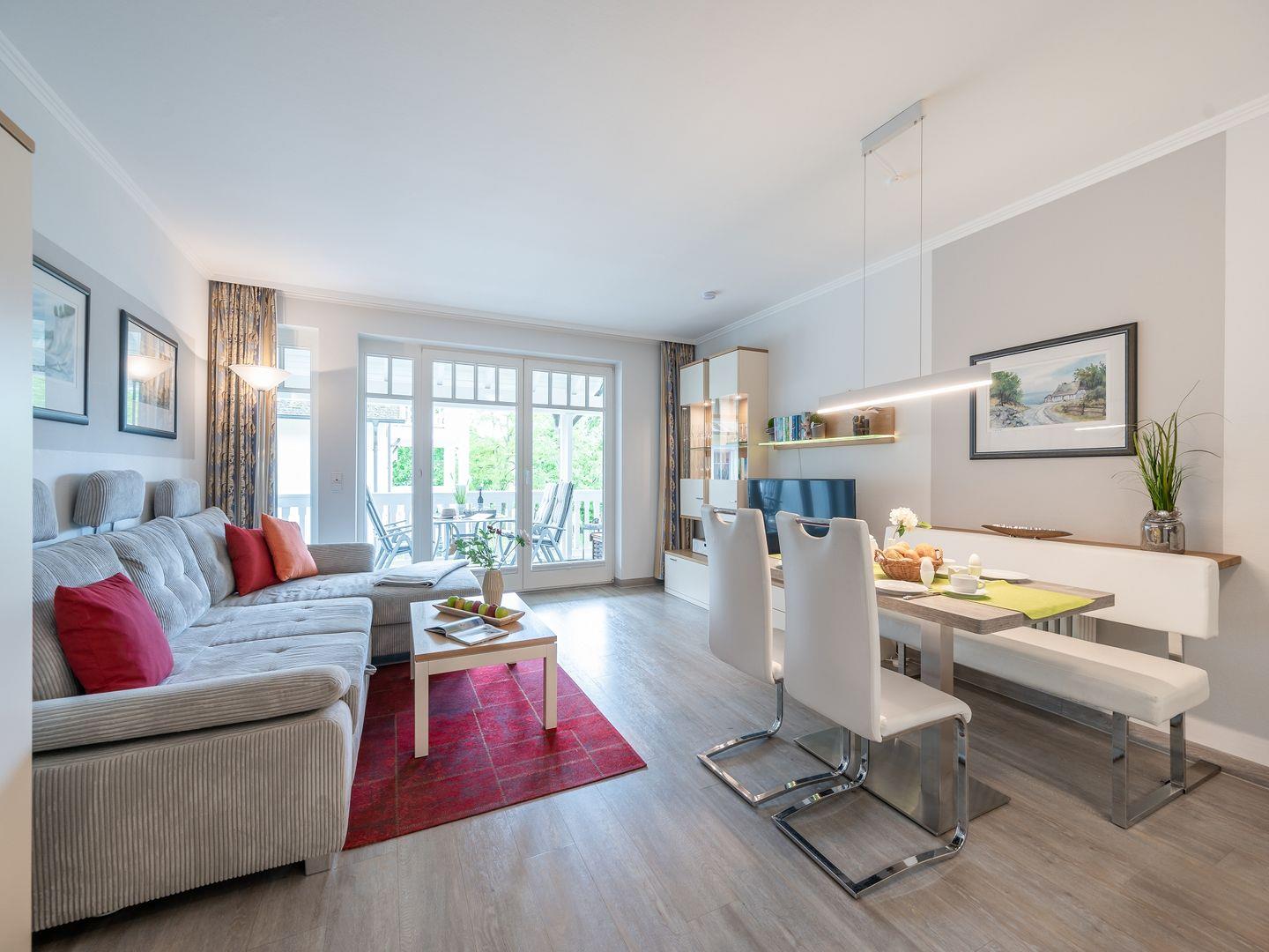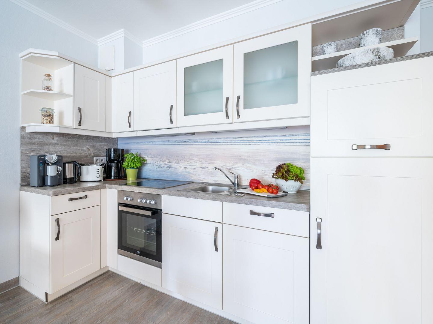 Wohnraum, separates Schlafzimmer mit Fernseher, Balkon, eingerichtete Küchenzeile mit Geschirrspüler und Mikrowelle, TASSIMO-Kaffeemaschine, Bad mit Dusche/ WC, 50 Zoll LCD-Flachbildschirm, DVD-Spieler, Stereo-Anlage, Haustiere nicht erlaubt, Nichtraucher, eigener Strandkorb (Mai - September) kostenfrei nutzbar
