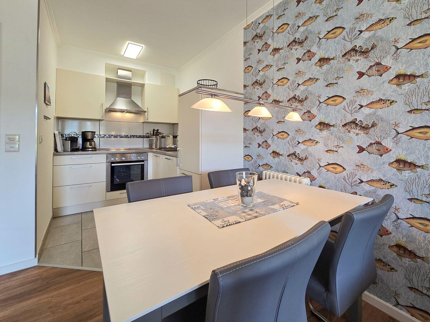 Diese komfortable Ferienwohnung bietet alles was das Herz begehrt und lädt Sie zu einem Frühstück auf Ihrer privaten Terrasse ein. Der Wohnraum verbindet ein gemütliches Wohnzimmer mit einem Essbereich und einer voll ausgestatteten Küche. Vorhanden sind ein Geschirrspüler, eine Cerankochfeld, ein Backofen, eine Mikrowelle sowie ein Wasserkocher, eine Nespresso-Kapselmaschine und ein Toaster. Das Wohnzimmer überzeugt mit einem 42 Zoll LCD-Flachbildschirm, einem DVD-Player, einer Stereo-Anlage mit Anschluss für MP3-Player oder IPod und einem ausziehbaren Schlafsofa. Im Schlafzimmer steht ein Doppelbett. Im Badezimmer erwarten Sie eine geräumige Dusche, ein Waschbecken, ein WC sowie ein großer Spiegel. Haustiere sind in dieser Wohnung herzlich willkommen.