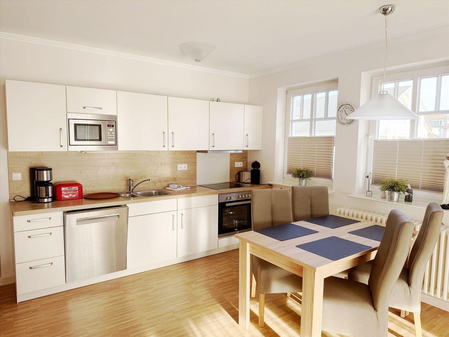 Wohnraum, separates Schlafzimmer, Balkon, eingerichtete Küchenzeile mit Geschirrspüler und Mikrowelle, Dusche/ WC, LCD-TV, DVD-Player, Stereo-Anlage, Haustiere nicht erlaubt, Nichtraucher,
