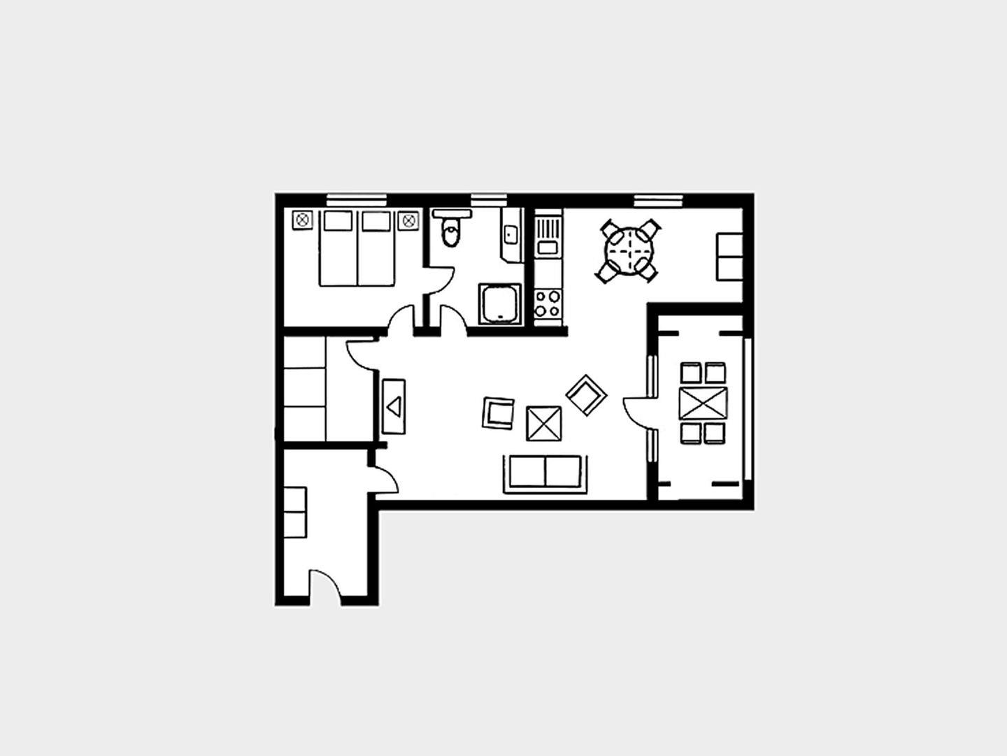 In dieser netten Ferienwohnung können Sie Ihr Frühstück auf dem eigenen großen Balkon genießen. Ein kombinierter Wohnraum verbindet die Küche mit dem Essbereich und dem Wohnzimmer. Hier finden sich ein LCD-Flachbildfernseher, ein DVD-Player und eine Stereo-Anlage. Die Küche ist voll ausgestattet und besitzt einen Geschirrspüler, ein Kochfeld, eine Mikrowelle, einen Wasserkocher, einen Toaster und eine Kaffeemaschine. Ein separates Schlafzimmer verfügt über ein Doppelbett. Im Badezimmer gibt es eine geräumige Dusche, ein Waschbecken, ein WC und einen großen Spiegel. In der Zeit von Mai bis September ist ein eigener Strandkorb am Strand gegen Aufpreis buchbar.