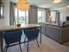 Dünenresidenz Neues Prora, Wohnzimmer mit LCD-TV, Balkon mit Meerblick, eingerichtete Küchenzeile mit Geschirrspüler und Backofen, Schlafzimmer mit Doppelbett und Fernseher, Bad mit Dusche, kostenfreier WLAN-Anschluss, Haustiere erlaubt, Nichtraucher