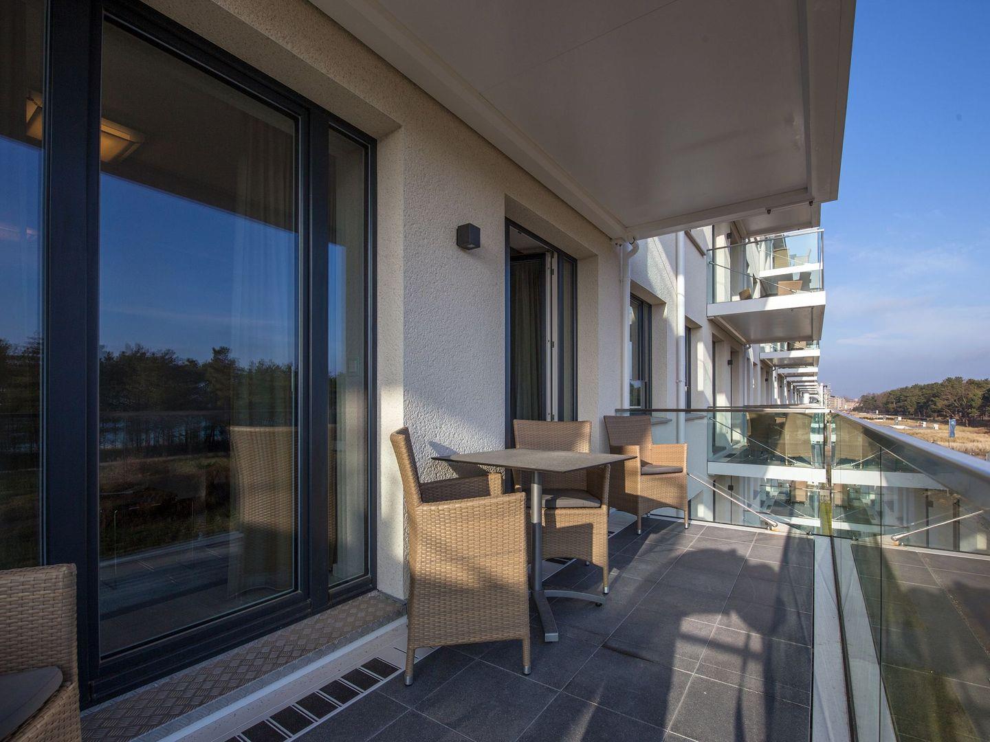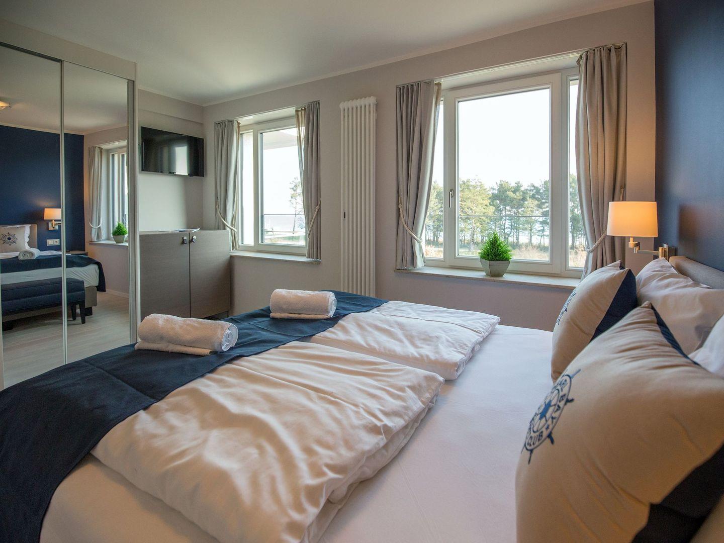 Diese hochwertig eingerichtete Ferienwohnung mit privatem Balkon mit Seeblick besteht aus einem großen Wohnraum mit Küche und Essbereich sowie einem separaten Schlafzimmer. Die Küchenzeile ist eingerichtet und überzeugt mit einem Kochfeld, einem Backofen, einem Geschirrspüler, einer Mikrowelle, einem Wasserkocher, einer Nespresso Kaffeemaschine und einem Toaster. Im Wohnzimmer, wie auch im Schlafzimmer stehen LCD-TV. Das Schlafzimmer ist mit einem gemütlichen Doppelbett ausgestattet. Eines der beiden Badezimmer überzeugt mit einer geräumigen Dusche, das andere mit einer Badewanne. Das gewisse Extra bietet die private Sauna. In der Zeit von Mai bis September ist ein eigener Strandkorb am Strand inklusive. Haustiere sind in dieser Wohnung herzlich willkommen.