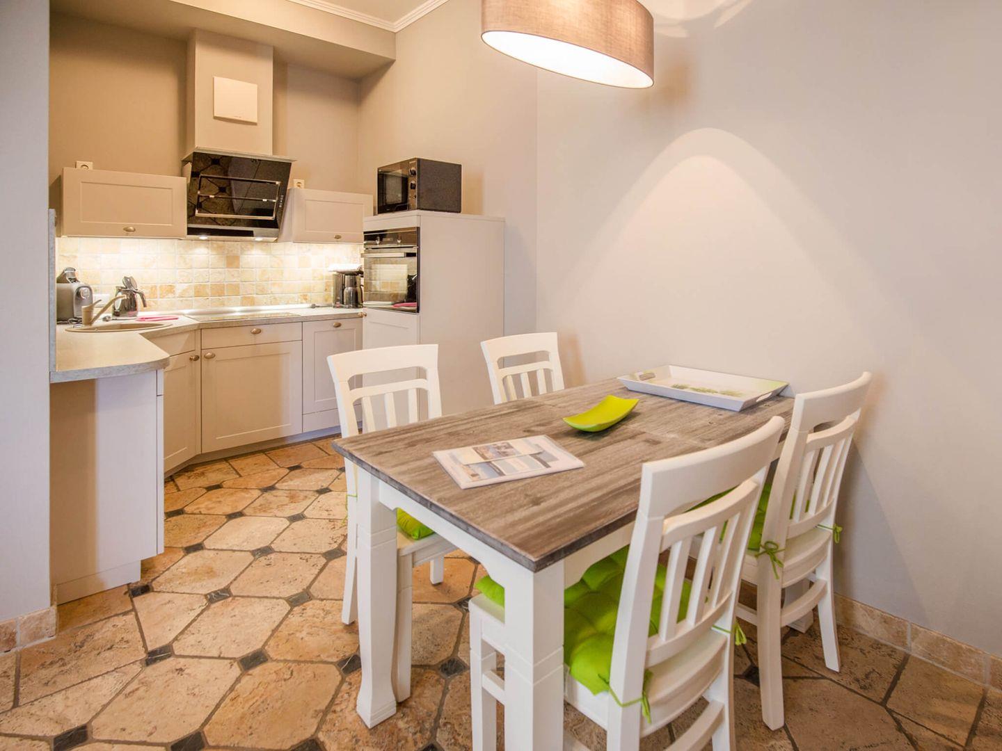 Villa Elfeld; Wohnzimmer, Schlafzimmer, separates seeseitiges Erkerzimmer, 2015 neue hochwertige Einbauküche mit 4-Platten-Ceranfeld, Backofen, Geschirrspüler und Mikrowelle, Bad mit Dusche/ WC, Telefon, LCD-Flachbildfernseher, DVD-Spieler, Stereo-Anlage, Haustiere nicht erlaubt und Nichtraucher, kostenfreier WLAN-Anschluss,