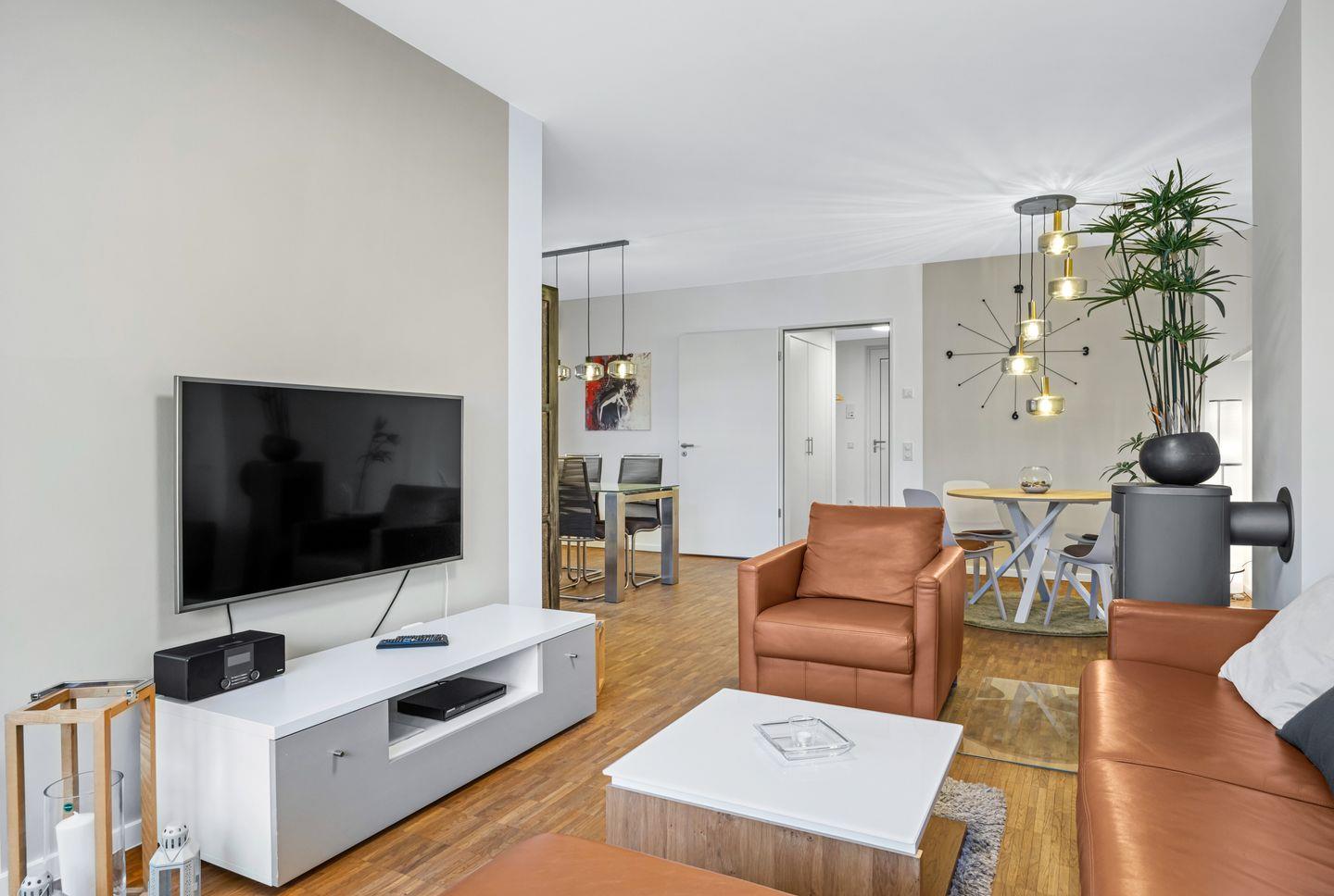 Das geschmackvolle Nichtraucher-Apartment mit Kaminofen verfügt über kostenfreies WLAN und beinhaltet ein Schlafzimmer mit Doppelbett, einen Wohnbereich mit Doppelschlafcouch (1,40 x 1,90 m) Flachbild-TV, Bluetooth-Radio und angrenzendem Balkon sowie eine hochwertiges Bad mit Dusche, Föhn und Waschmaschine.