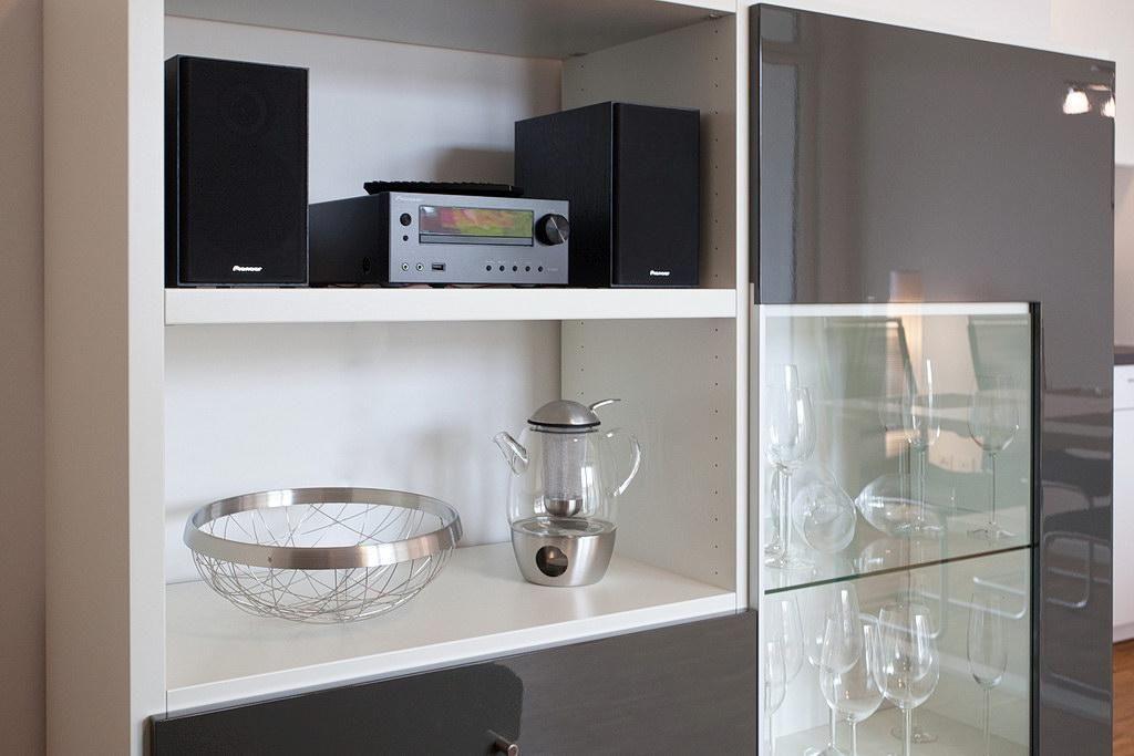 Die Ausstattung mit Fußbodenheizung, weitläufigen Fenstern und lichtdurchfluteten Räumen wird ergänzt durch eine voll ausgestattete offene Küche mit Wasserkocher, Kaffeemaschine, Toaster, Backofen, Mikrowelle, Geschirrspüler und Kühlschrank mit Tiefkühlfach, Waschmaschine, Föhn, Kosmetikspiegel sowie ein HD-Flachbild-TV, ein Blu-ray-/DVD-Player sowie eine HiFi-Anlage mit CD-Player. Ein Kinderbett kann gegen Entgelt im Schlafzimmer aufgestellt werden und auf Wunsch könnt ihr einen Hochstuhl hinzubuchen.