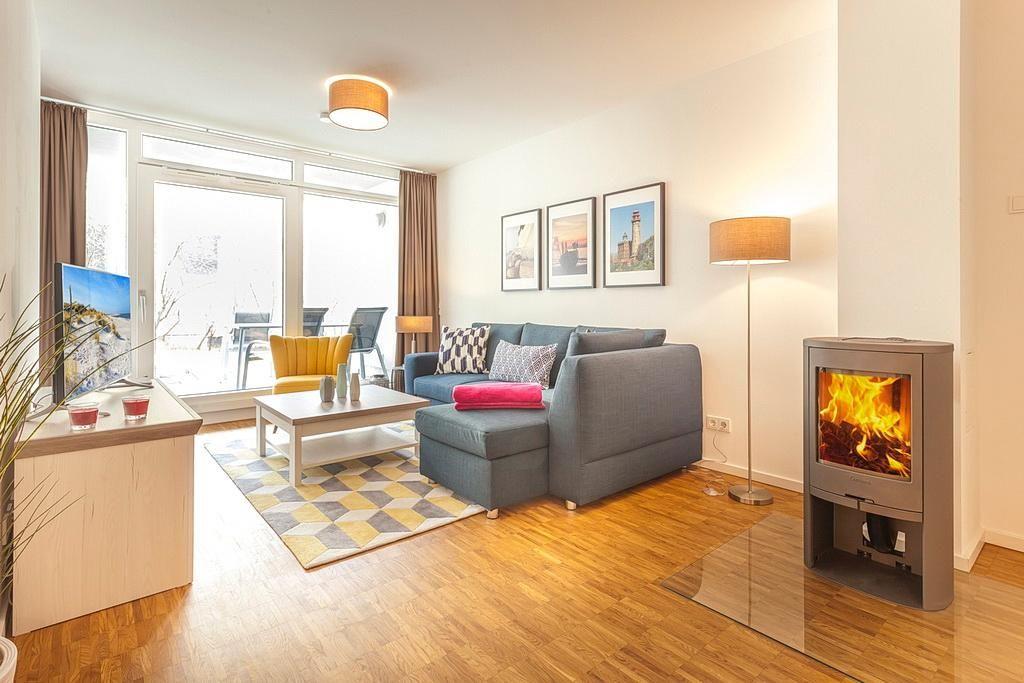 Schönes Apartment mit Südterrasse, Kaminofen & Fußbodenheizung - 150m zum Strand