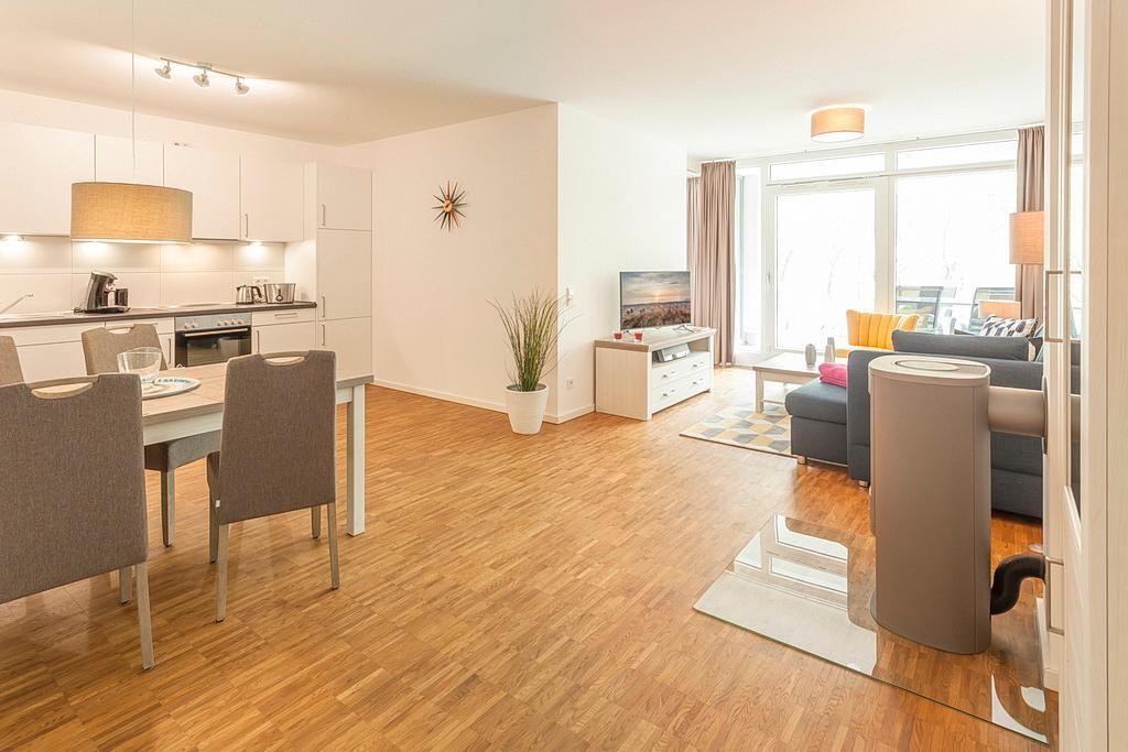 Hochwertige Ferienapartments an der Ostsee findet ihr im DünenResort Binz. Das Apartment mit 2 Zimmern, 70 m², Kaminofen, einer offenen Südterrasse und Fußbodenheizung ist ideal für 3 Personen geeignet.