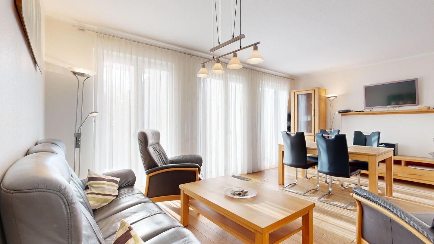 * Wohnzimmer: Leder-Couchgarnitur, Kabel-TV, CD-Player, WLAN-Internetanschluss, Essplatz, Echtholzparkett-Böden
