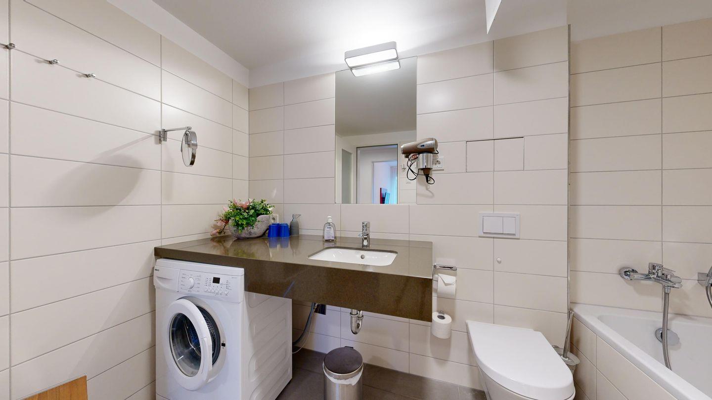 * Badezimmer mit Dusche, WC, Waschmaschine,