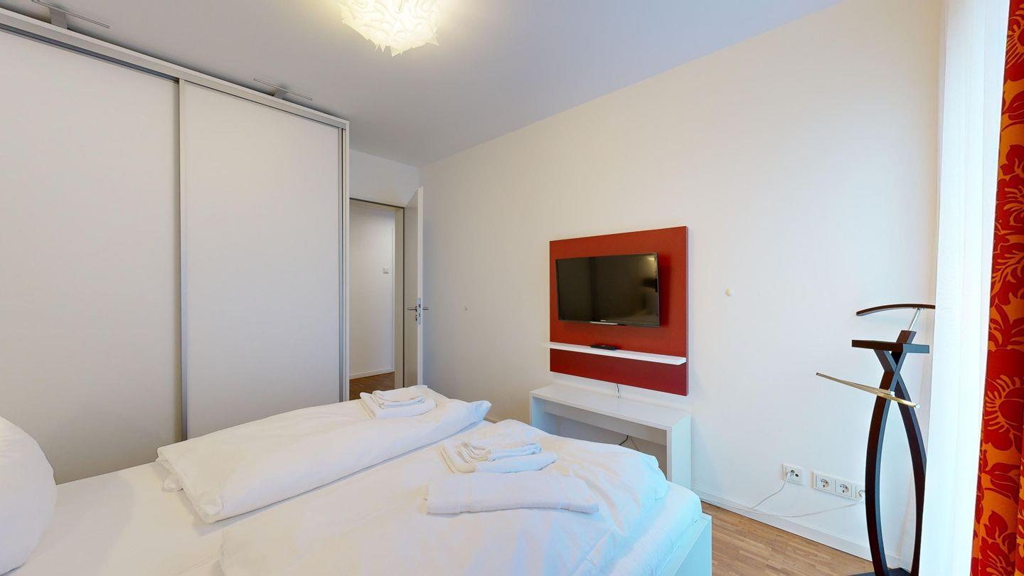 * 1 Schlafzimmer mit einem Doppelbett, TV, Balkon