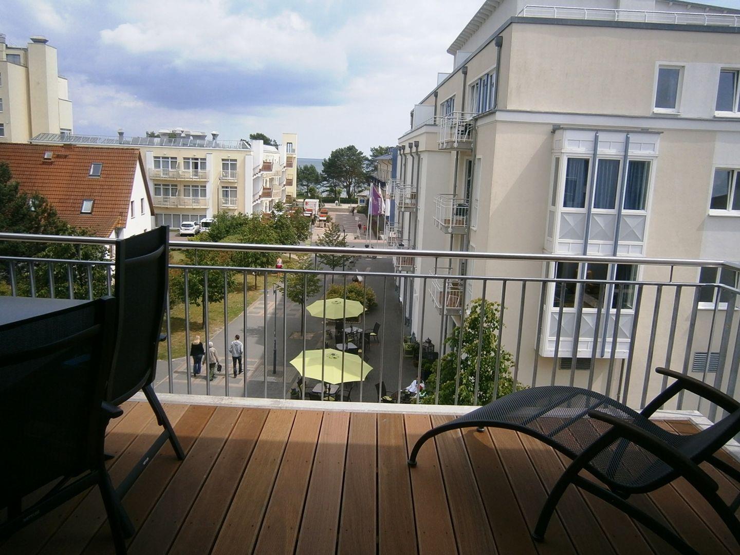 * 1 sehr großer Balkon mit Balkonmöbeln und Meerblick