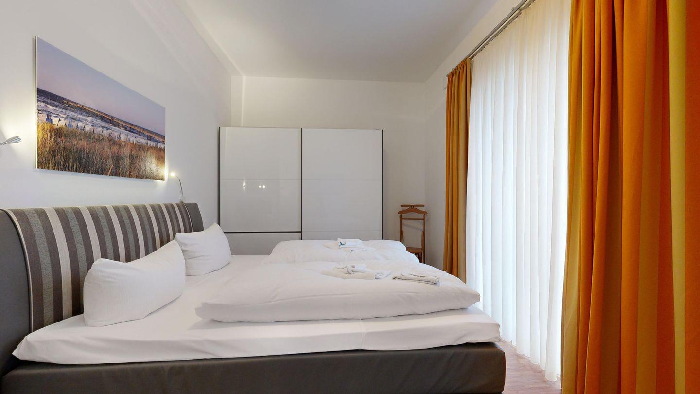 * 1 Schlafzimmer mit einem Doppelbett, begehbarer Kleiderschrank