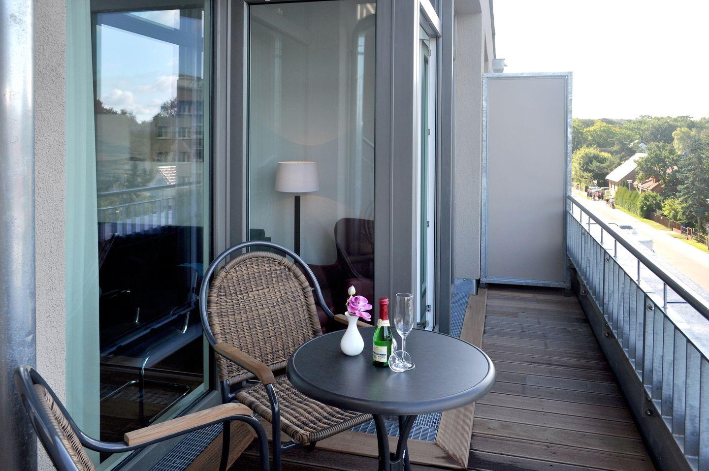 * Zusätzlich gibt es über eine Treppe eine Dachterrasse mit einem Strandkorb und einem fantastischen Rundumblick über ganz Binz. Bei der Dachterrasse weisen wir auf eine eingeschränkte Nutzungsmöglichkeit hin. Es ist der Lebensraum der Möwen, die hier zu Hause sind und sich durchaus bemerkbar machen.
