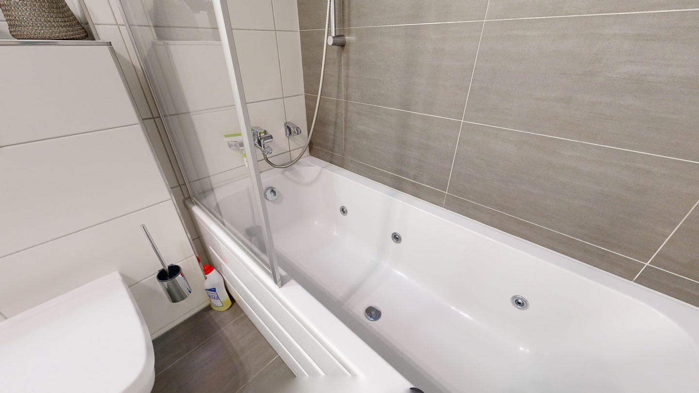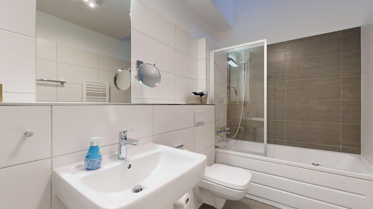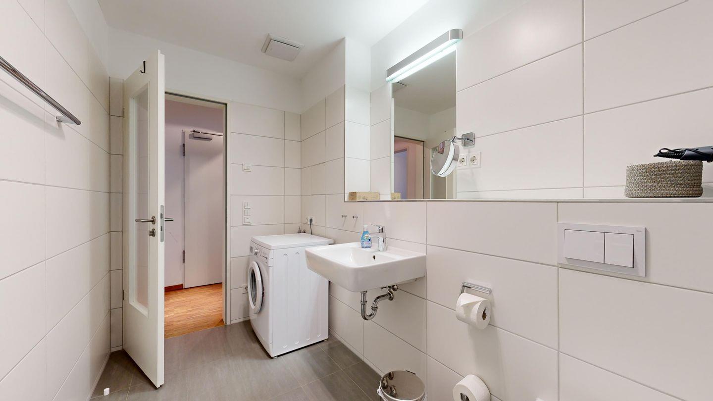 * Badezimmer mit Whirlpool-Badewanne inkl. Dusche, Föhn, WC, Waschmaschine