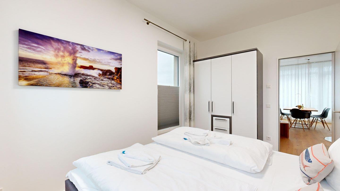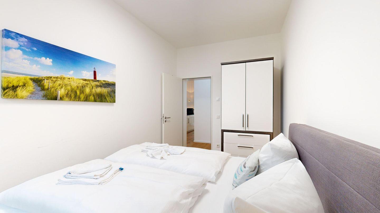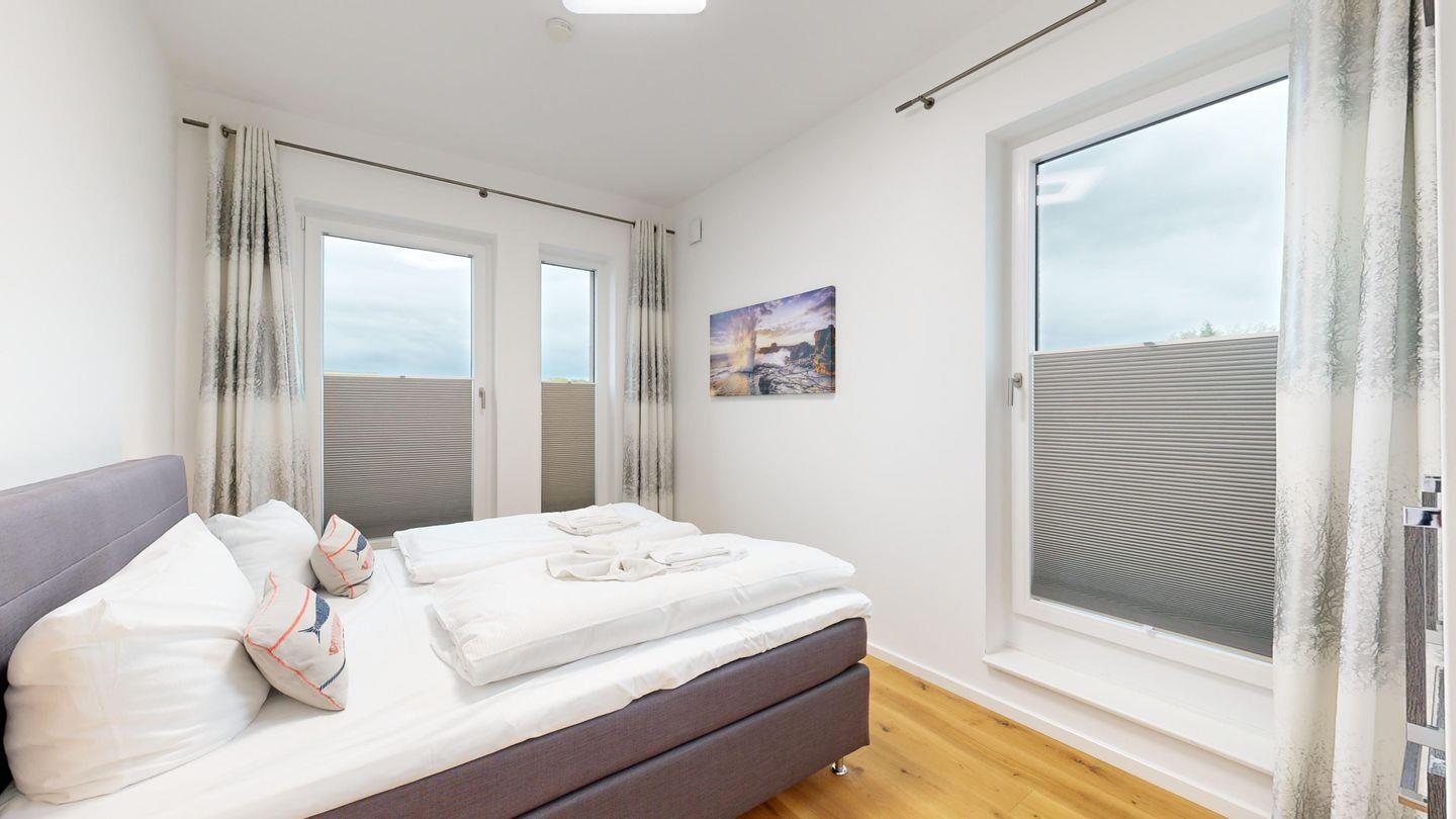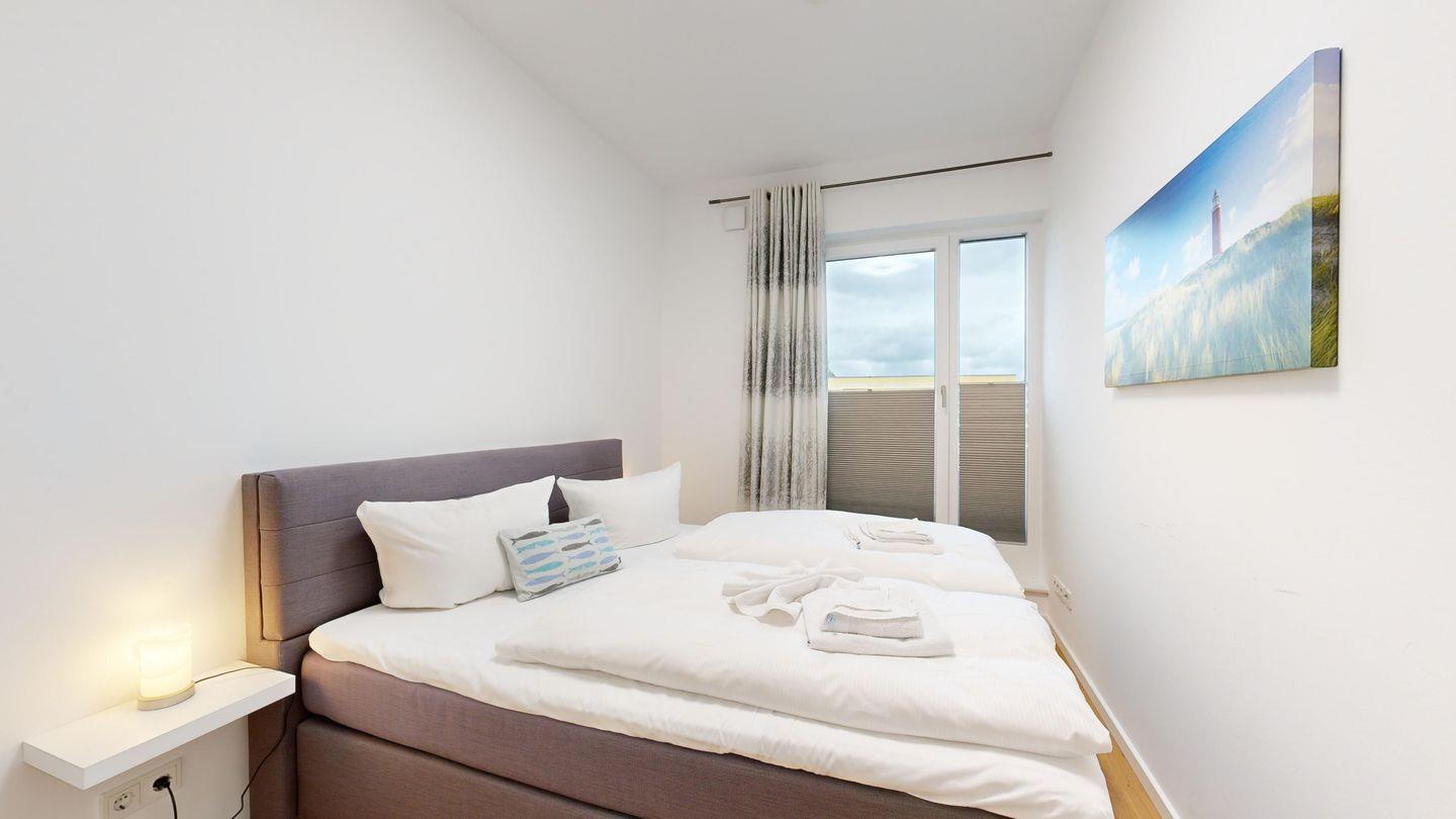 * 2 Schlafzimmer mit je einem Doppelbett, abdunkelnde Rollos und Balkon