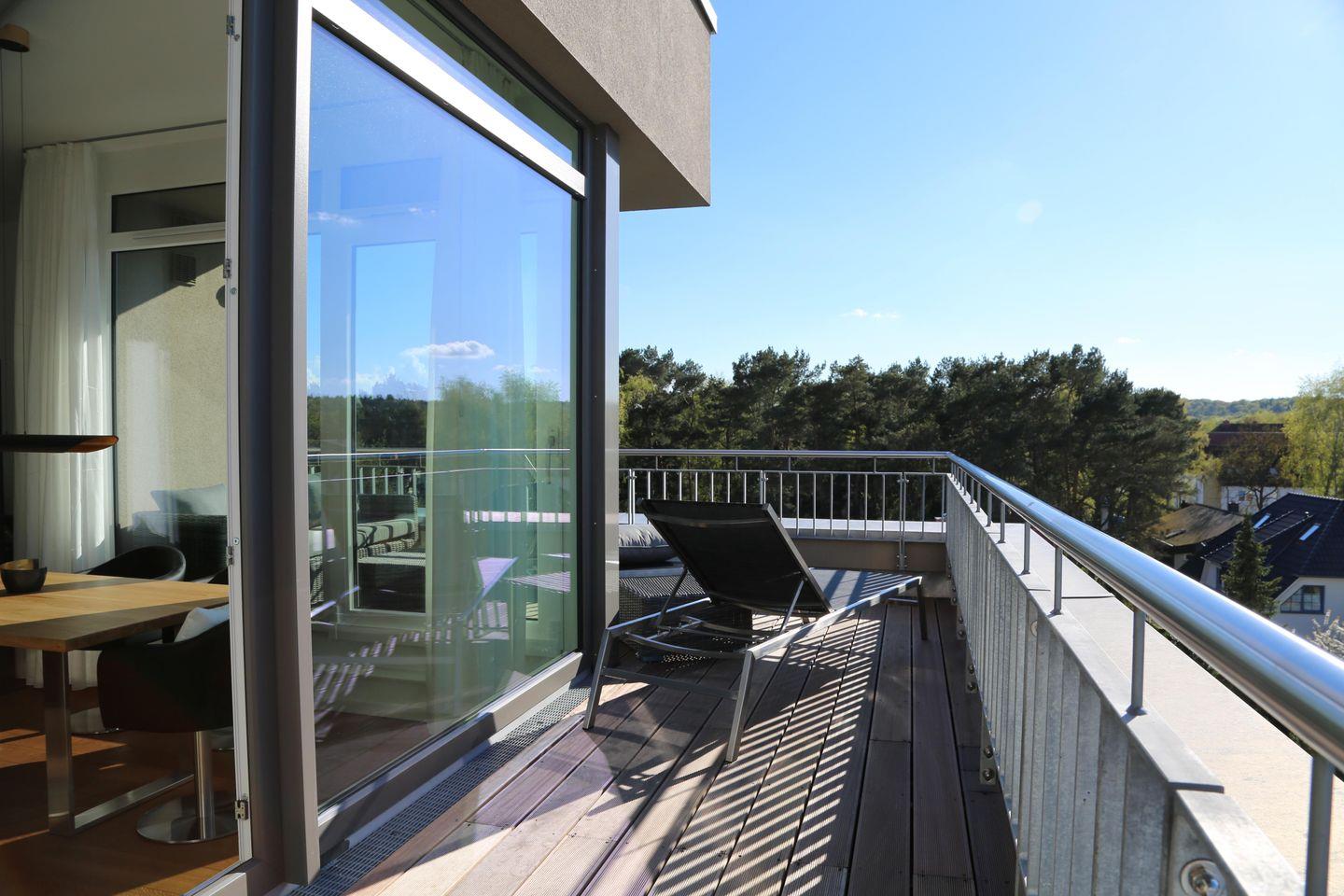 * 1 umlaufender Balkon mit Süd-Terrasse, Sitzgarnitur, Sonnenliegen
