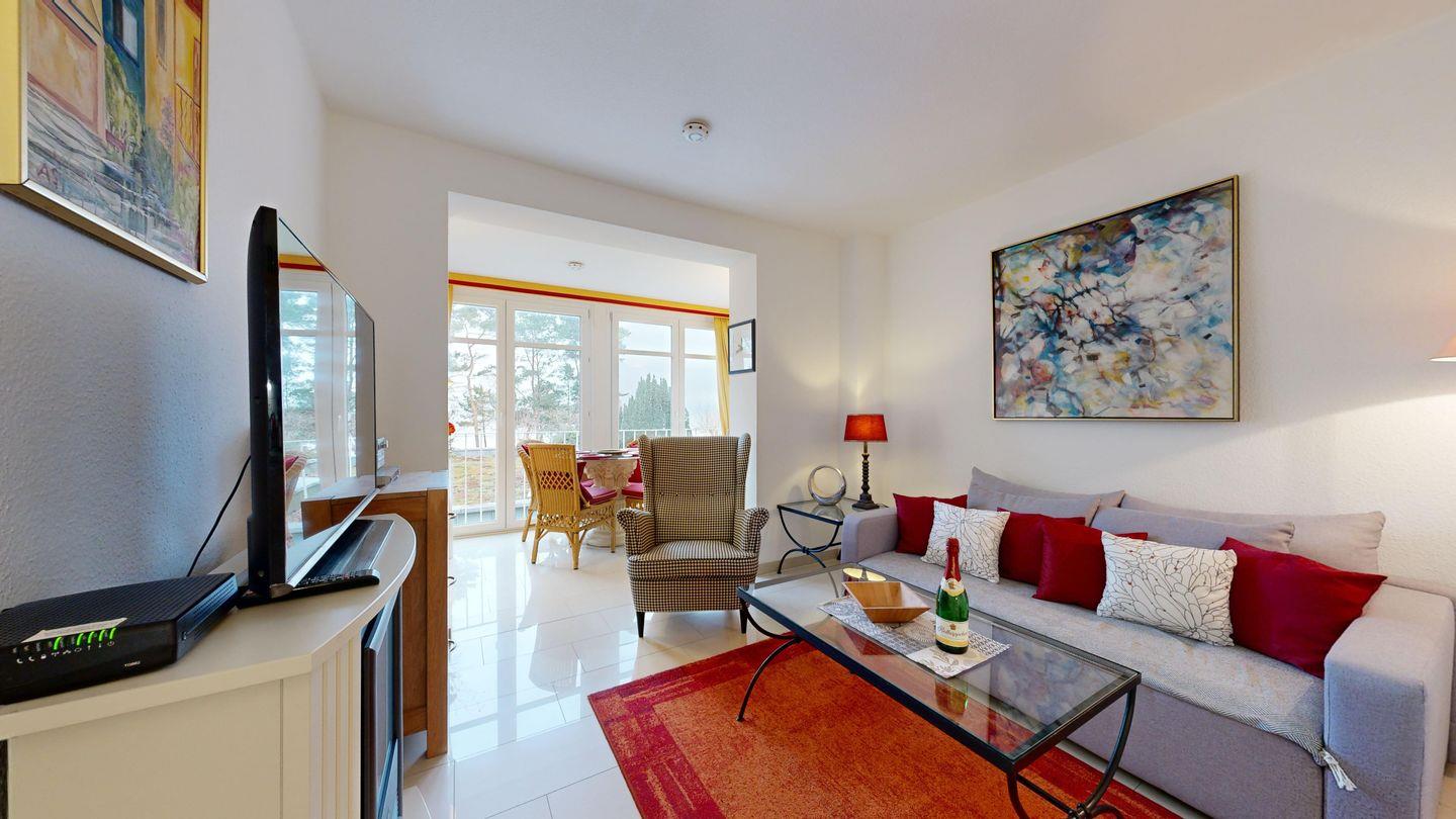 Wichtiger Hinweis: Die Gemeinde Binz führt in der PKW-Anfahrtsstraße zum Objekt (Schwedenstraße) zurzeit Straßenbauarbeiten durch. Im Zeitraum bis voraussichtlich Ende April kommt es dadurch zu einer Vollsperrung der Straße. Die anliegenden Objekte können nicht mit dem PKW angefahren werden. Sie können die Unterkunft aber fußläufig über die Strandpromenade erreichen. Zudem kann es zu Lärmbelästigungen kommen.