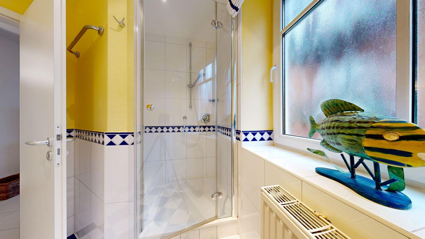 * 1 Badezimmer mit Dusche, WC und Föhn