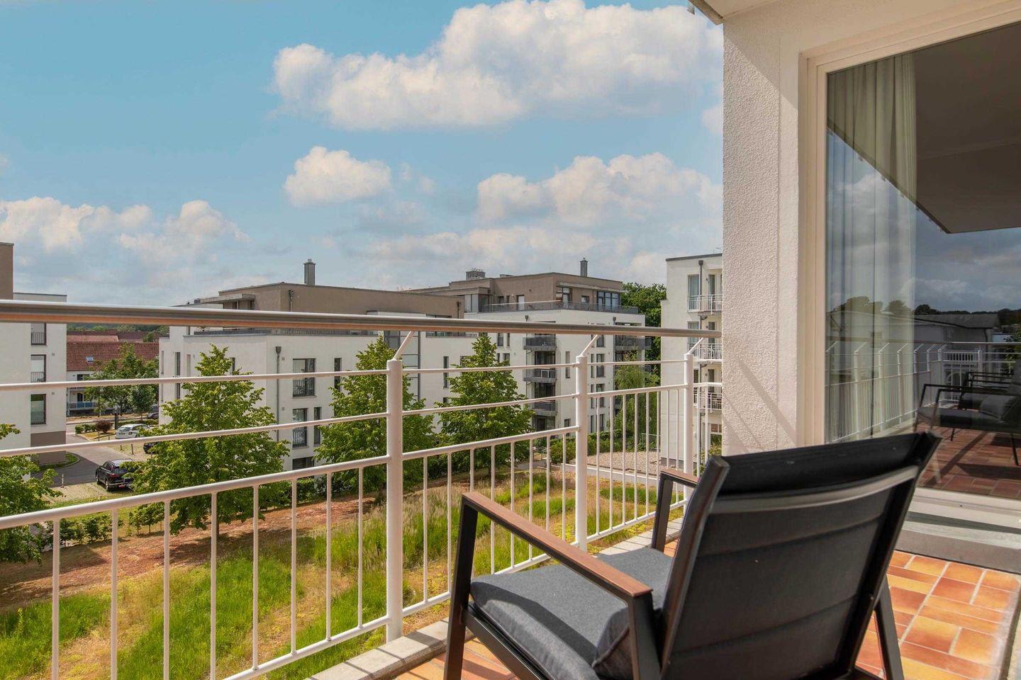 * 12 m² großer Südbalkon mit Balkonmöbeln (Südwest-Ausrichtung)