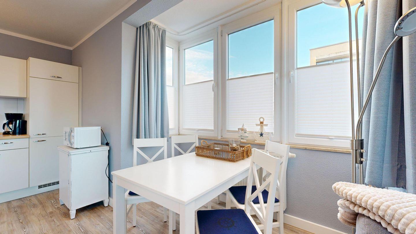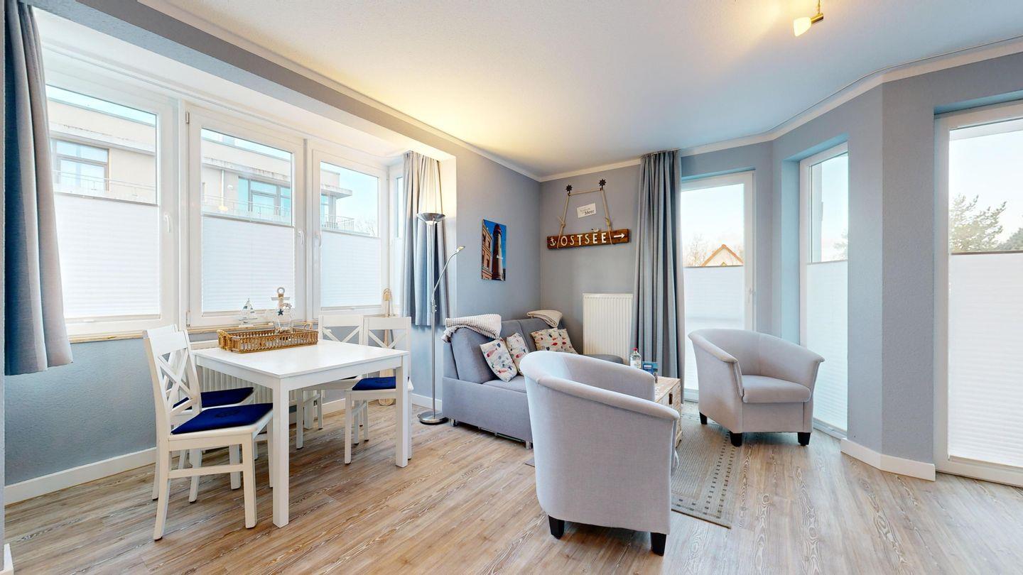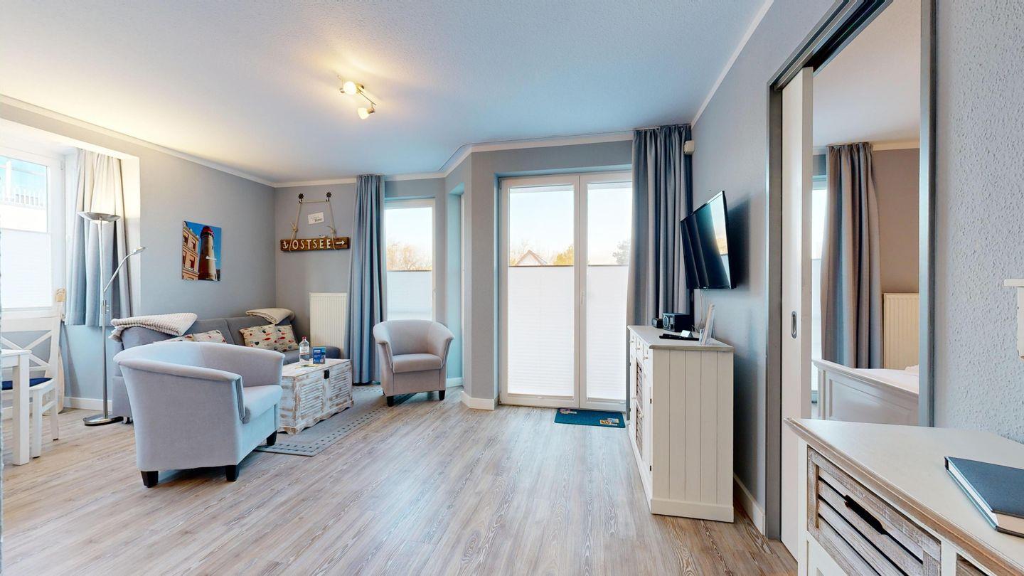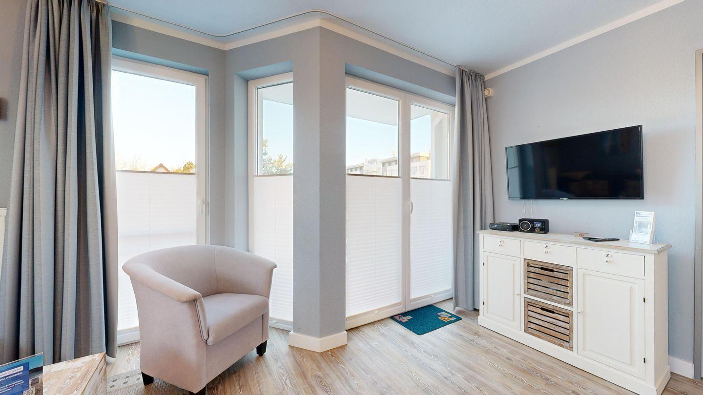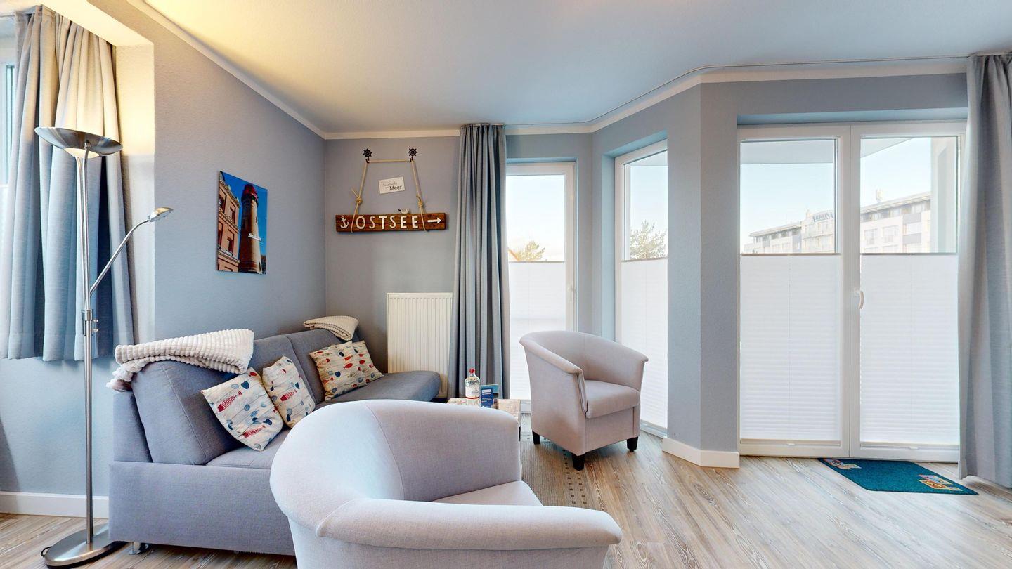 * Balkon mit Balkonmöbeln und eingeschränktem Ostseeblick (Nordwest-Ausrichtung)