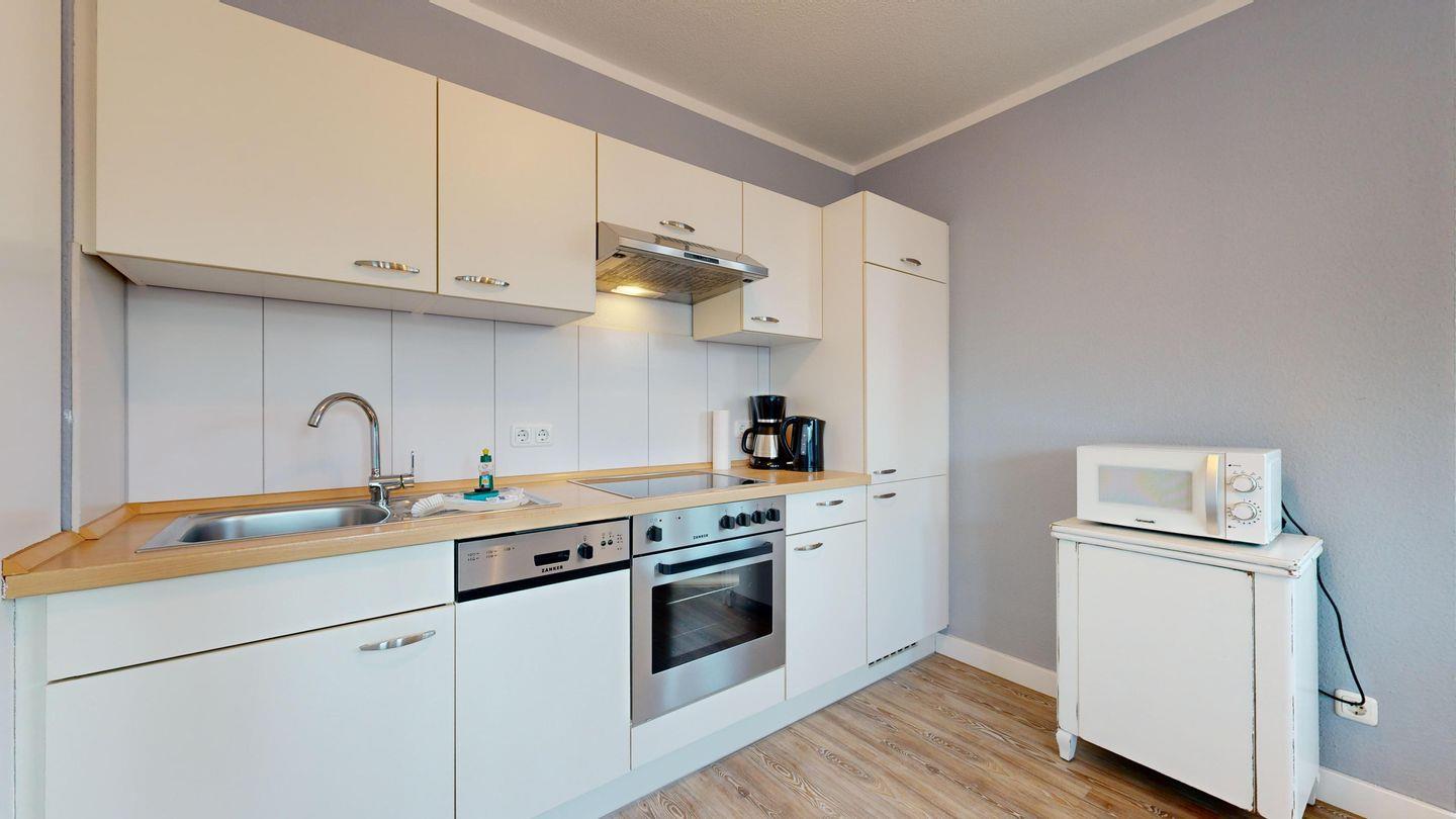 * Küche mit Ceranfeld, Kühlschrank mit Gefrierfach, Backofen, Spülmaschine, Toaster, Wasserkocher, Kaffeemaschine
