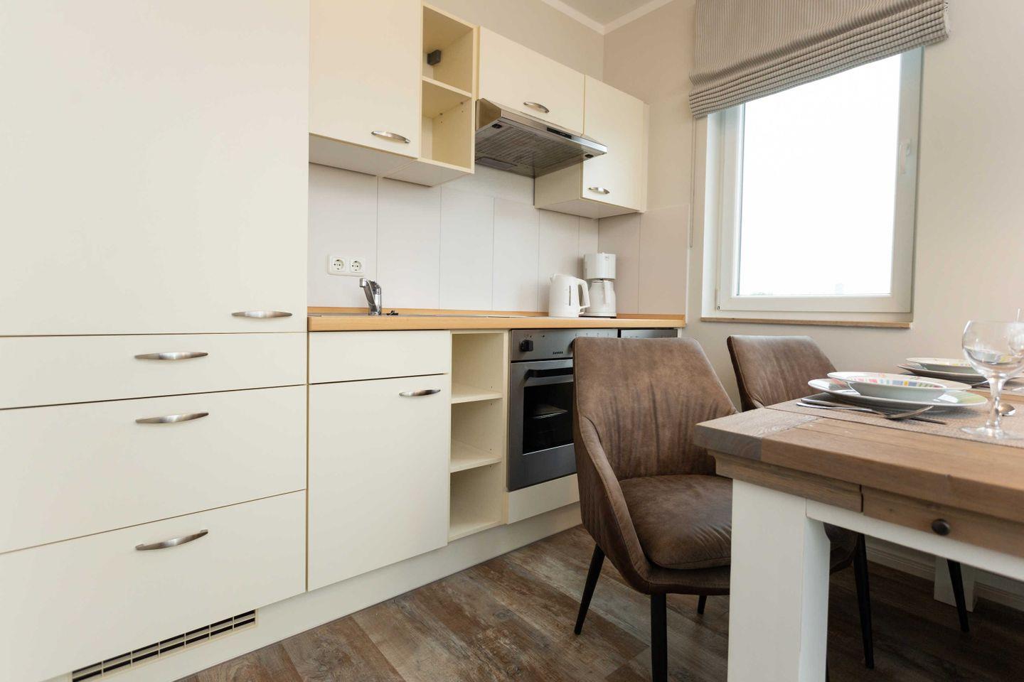 * Küche mit Ceranfeld, Kühlschrank mit Gefrierfach, Backofen, Spülmaschine, Toaster, Wasserkocher, Kaffeemaschine