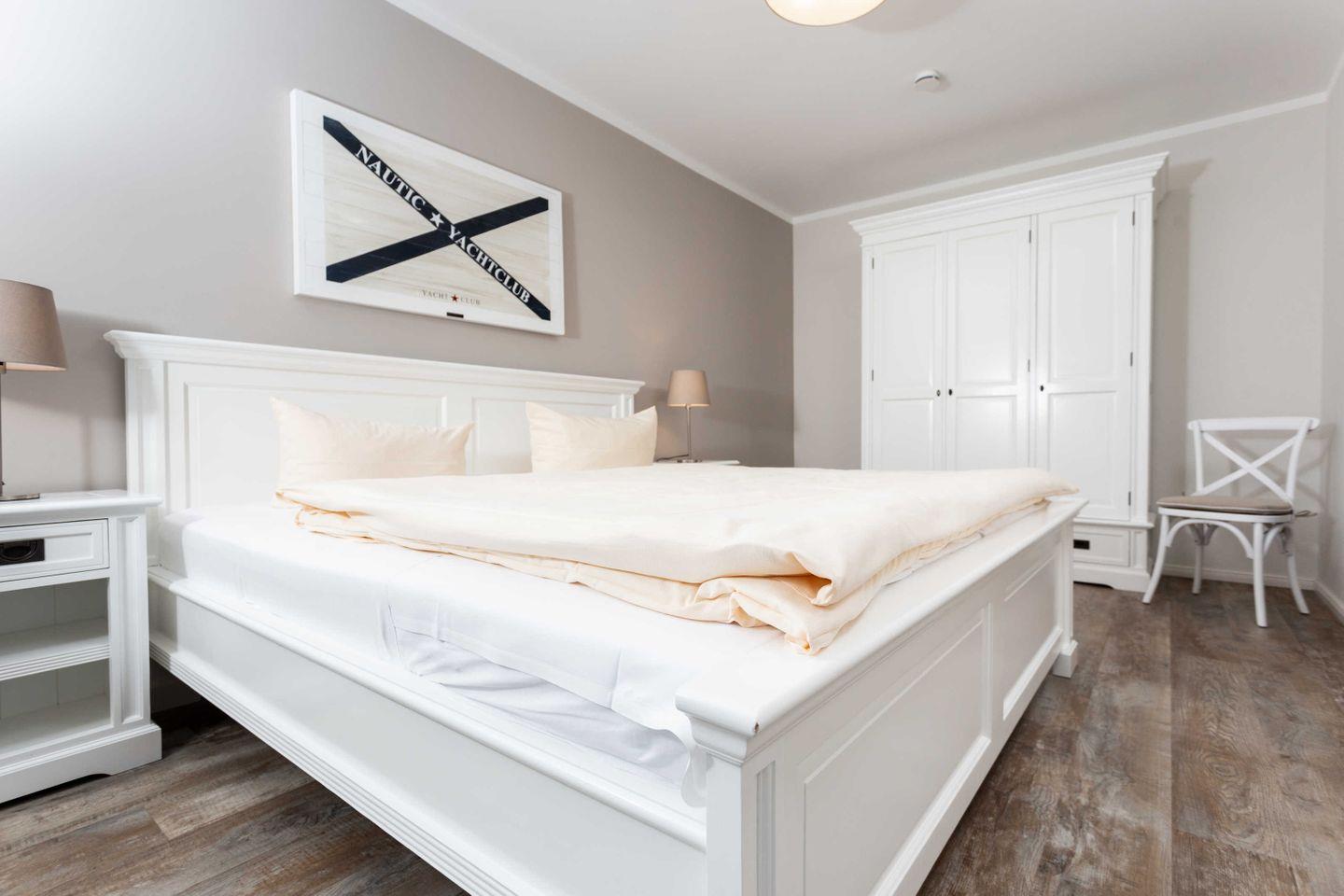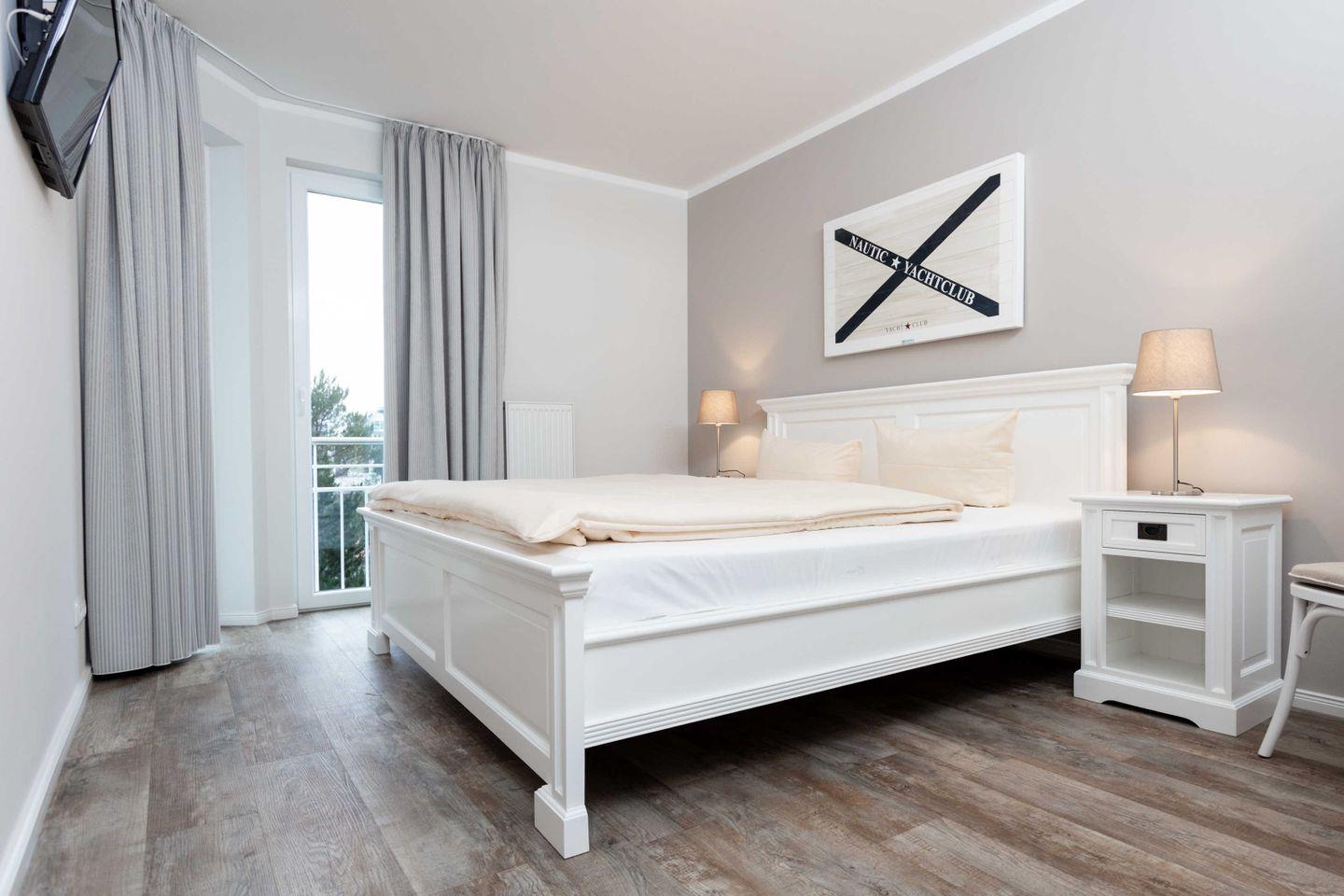 * 1 Schlafzimmer mit einem Doppelbett, Kleiderschrank und TV