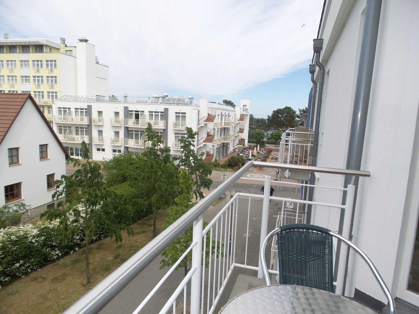 * Balkon (Nord-West-Ausrichtung) mit eingeschränkten Ostseeblick und Balkonmöbeln