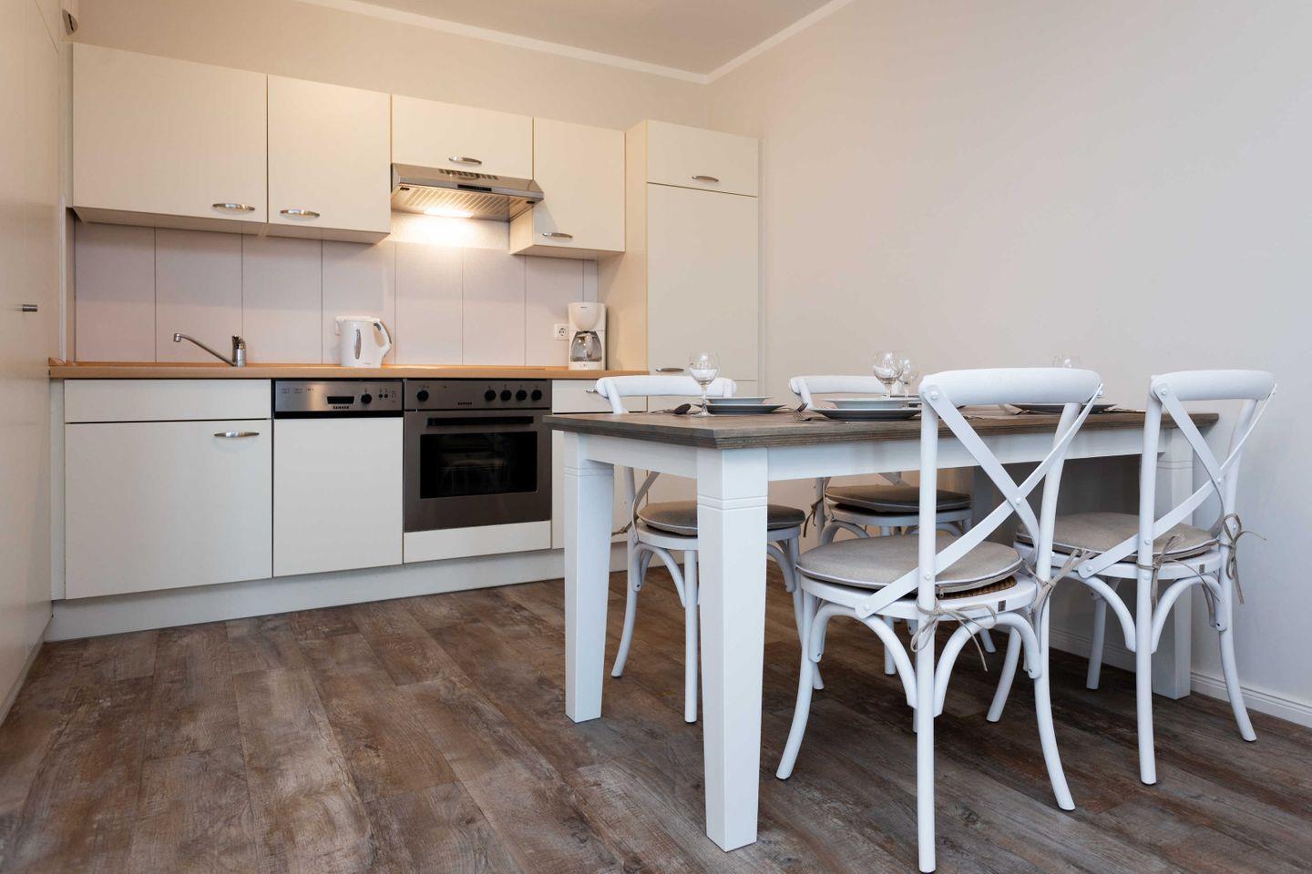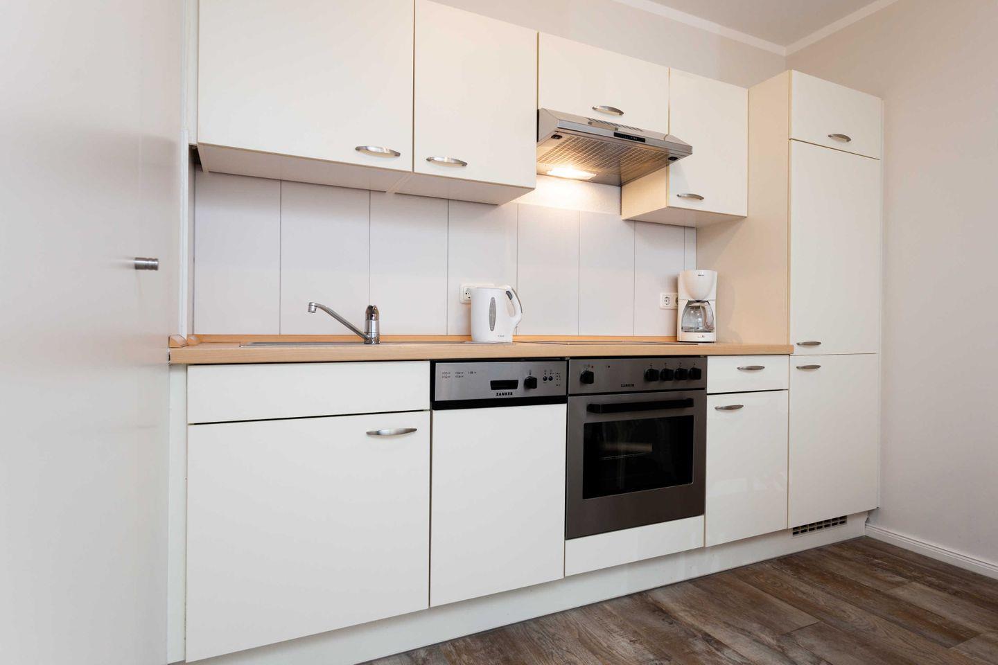 * Küche mit Ceranfeld, Kühlschrank mit Gefrierfach, Backofen, Spülmaschine, Toaster, Wasserkocher, Kaffeemaschine