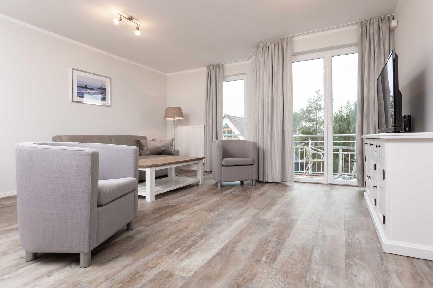 Ferienwohnung mit Balkon für 2-4 Personen mit hochwertiger Möblierung im 2. OG mit 1 Schlafzimmer (2 Zimmer / 55 m²):