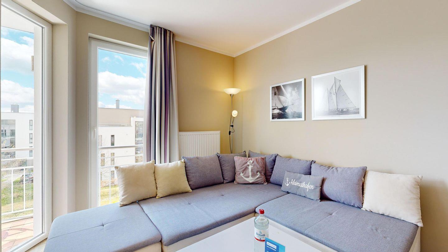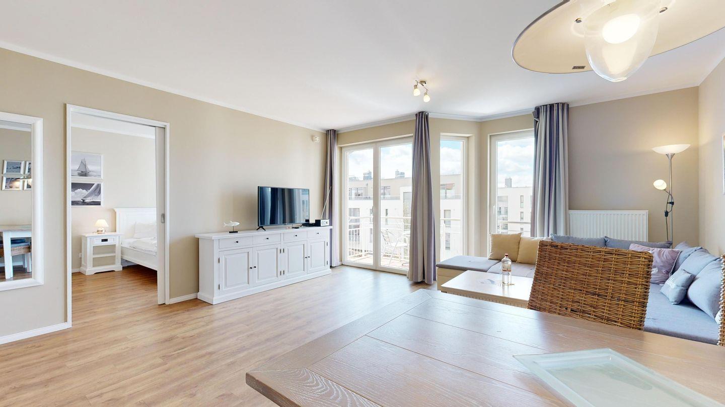 Ferienwohnung mit Balkon für 2-4 Personen; Komfort-Ausstattung der Wohnung im 2. OG mit 1 Schlafzimmer (2 Zimmer / 57 m²):