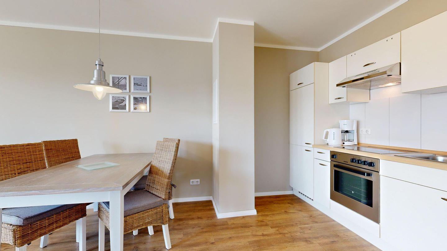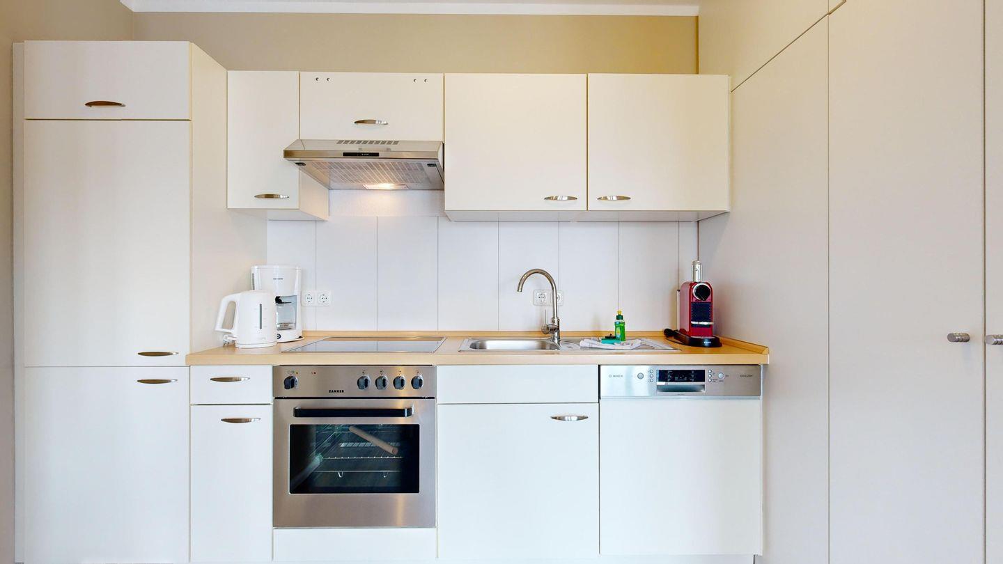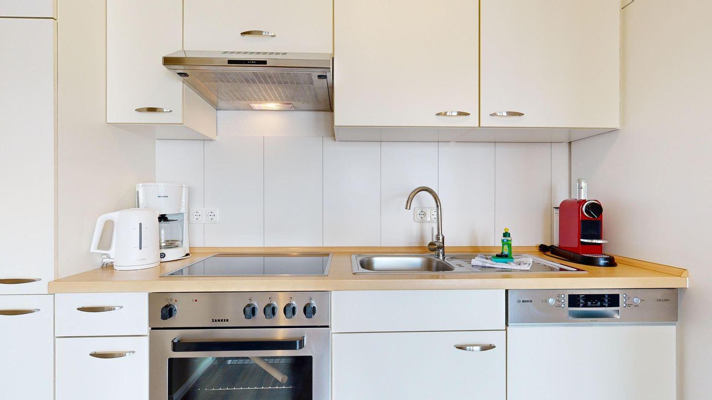 * Küche mit Ceranfeld, Kühlschrank mit Gefrierfach, Backofen, Spülmaschine, Mikrowelle, Toaster, Wasserkocher, Kaffeemaschine und zusätzlich eine Nespresso Kapselmaschine (keine Kapseln)