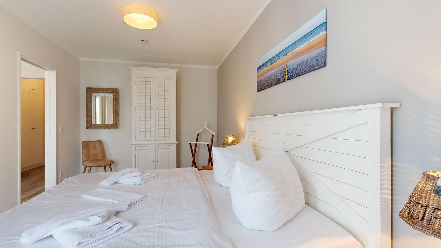 * 1 Schlafzimmer mit einem Doppelbett, Kleiderschrank und TV
