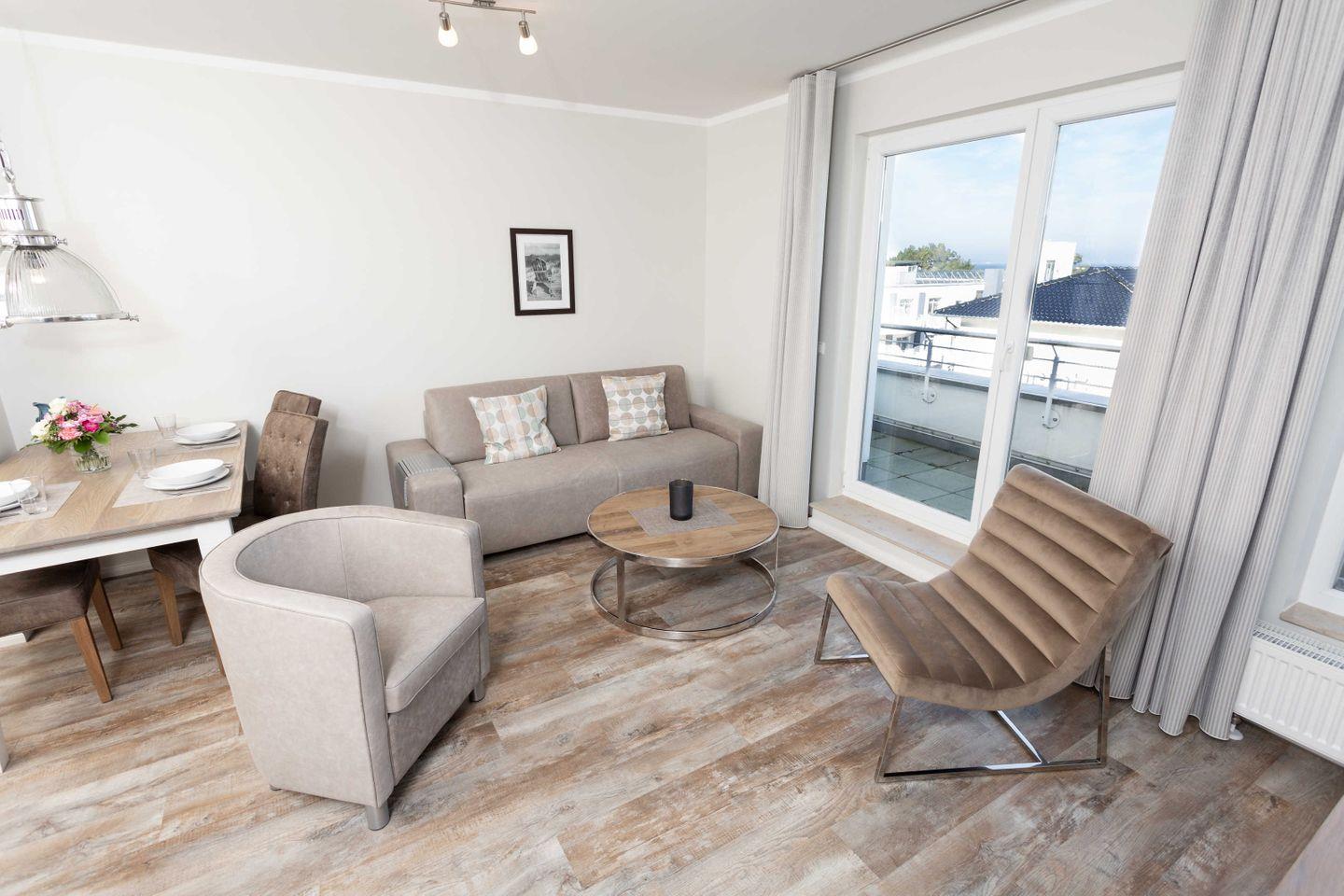 Ferienwohnung mit Balkon für 2-4 Personen mit hochwertiger Möblierung im 3. OG mit 1 Schlafzimmer (2 Zimmer / 50²):