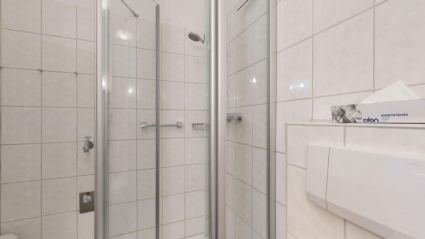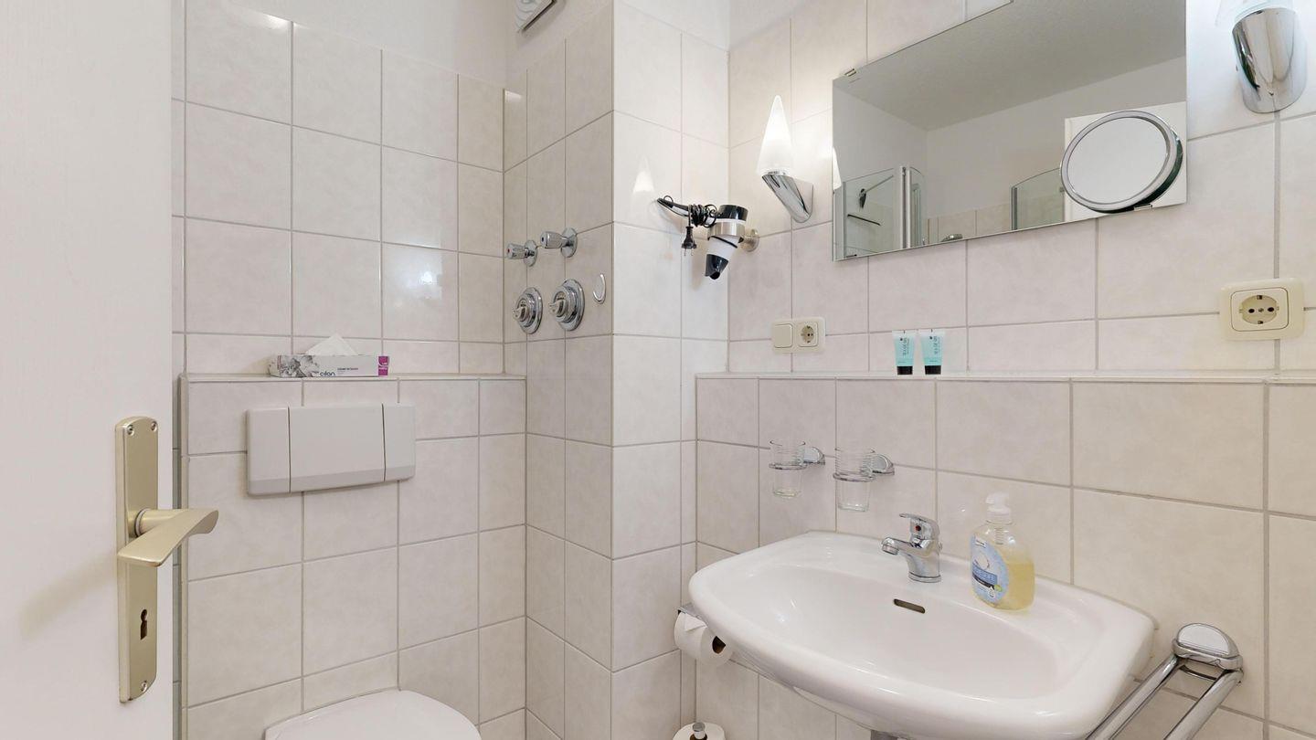 * Dusche (Tiefeinsteiger), WC, Haartrockner