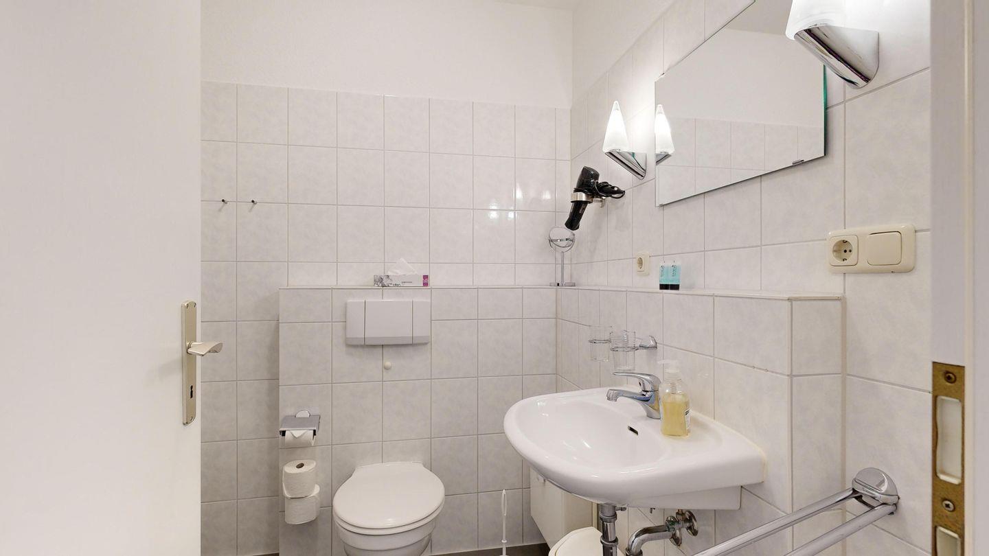 * Dusche (Tiefeinsteiger), WC, Haartrockner