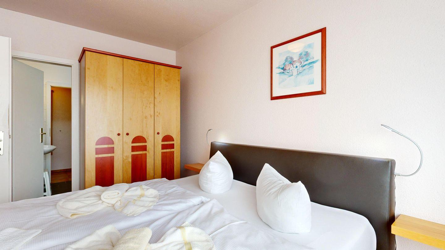 * 1 Schlafzimmer mit einem Boxspringbett (Doppelbett) und TV