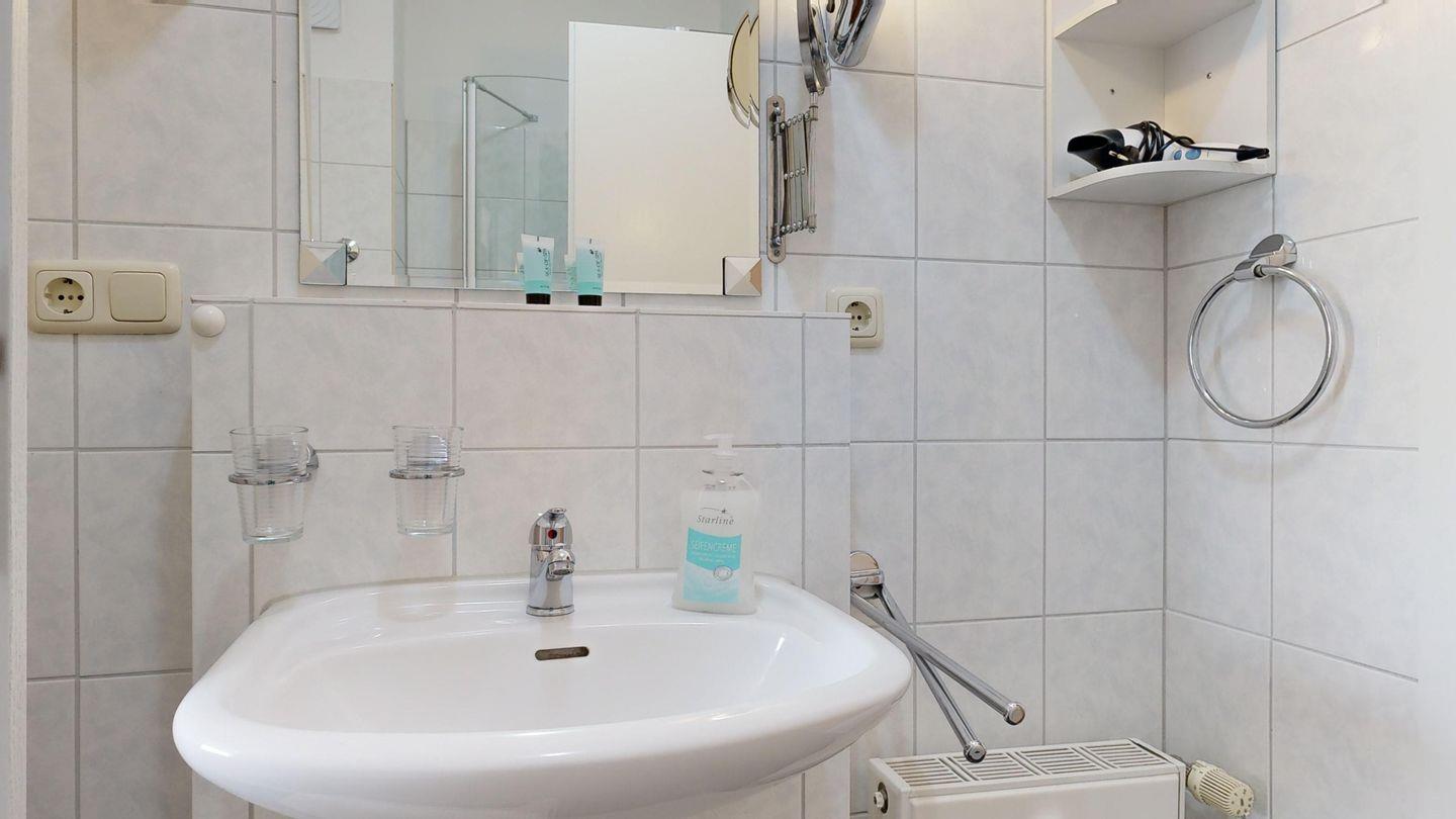 * Dusche (Tiefeinsteiger), WC, Haartrockner