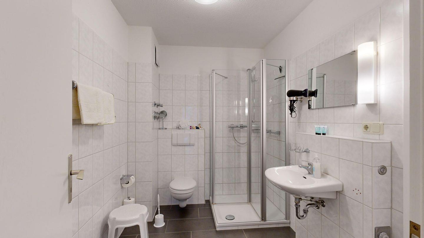 * Dusche (Tiefeinsteiger), WC, Haartrockner