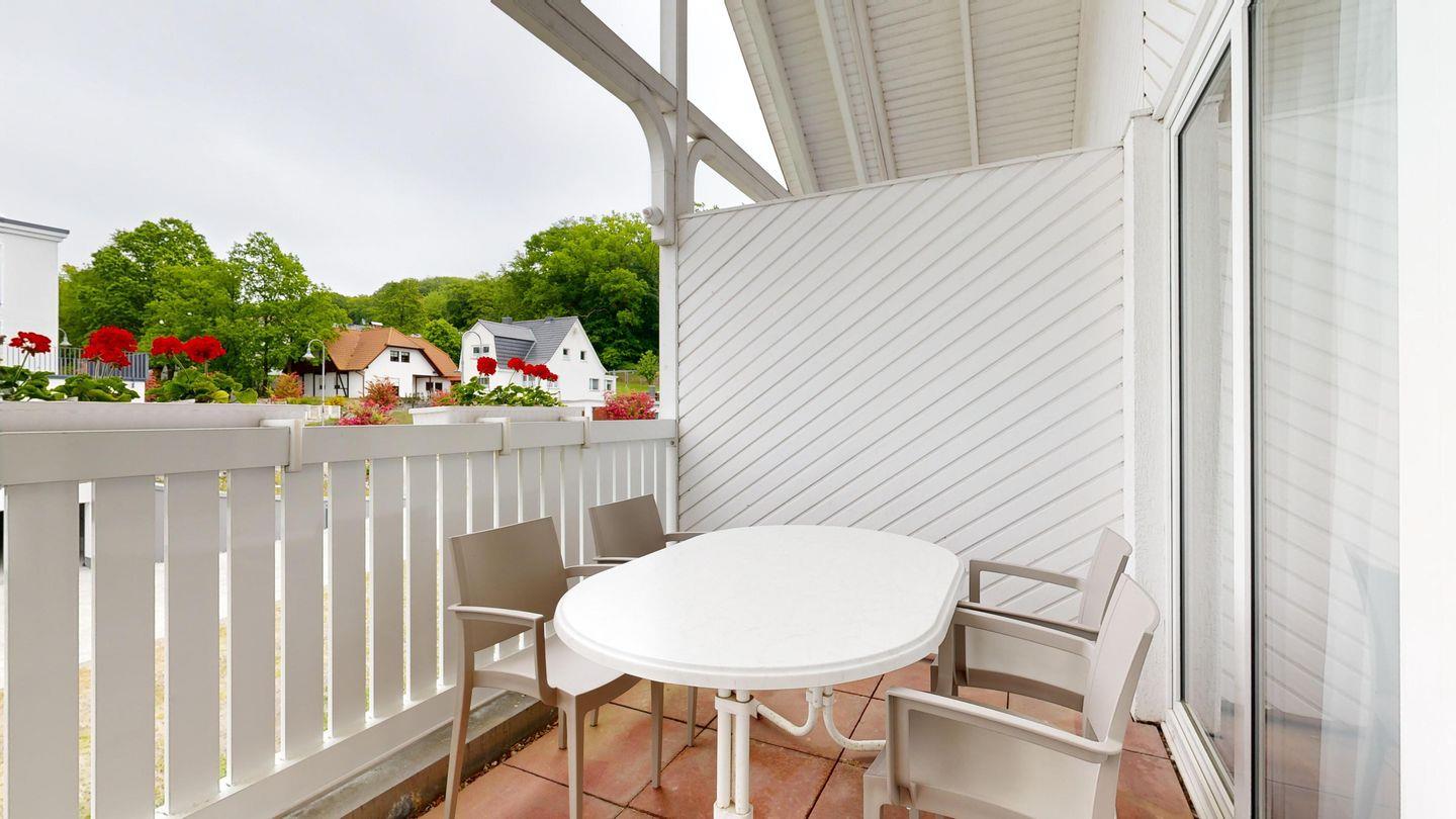 * möblierter Balkon